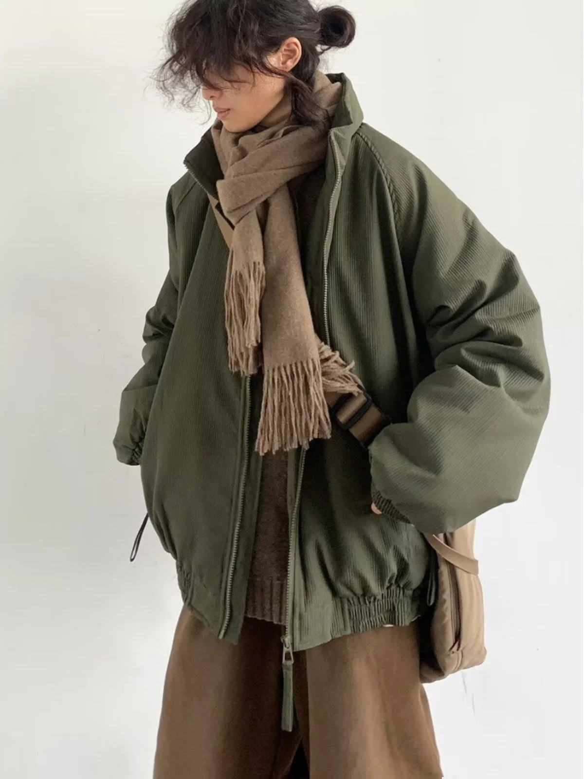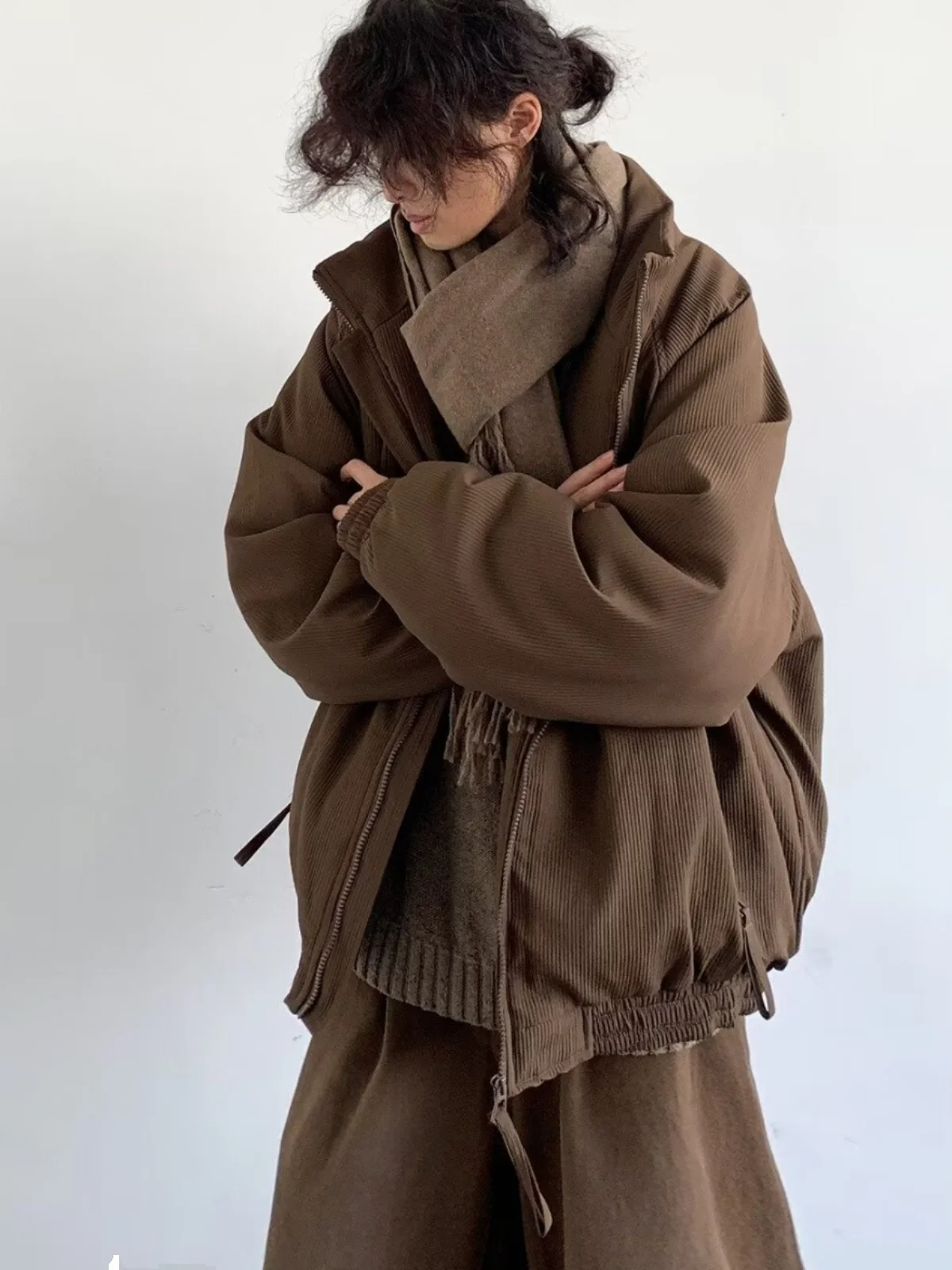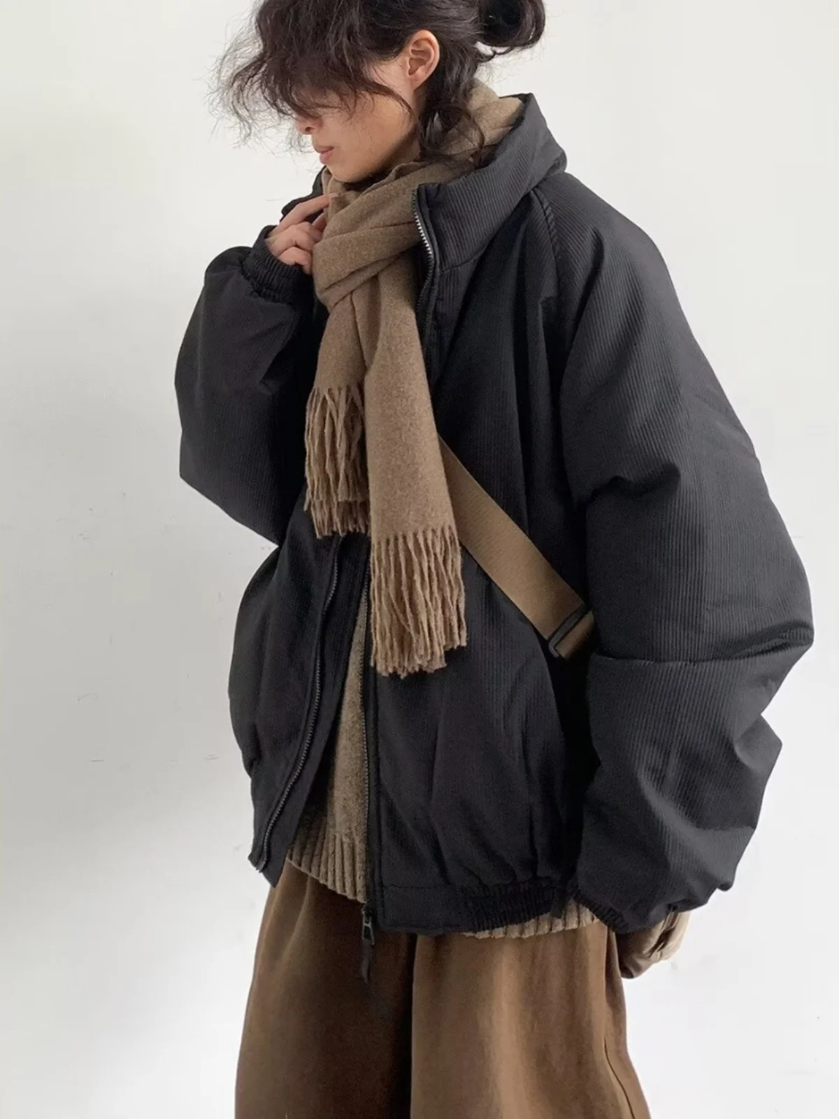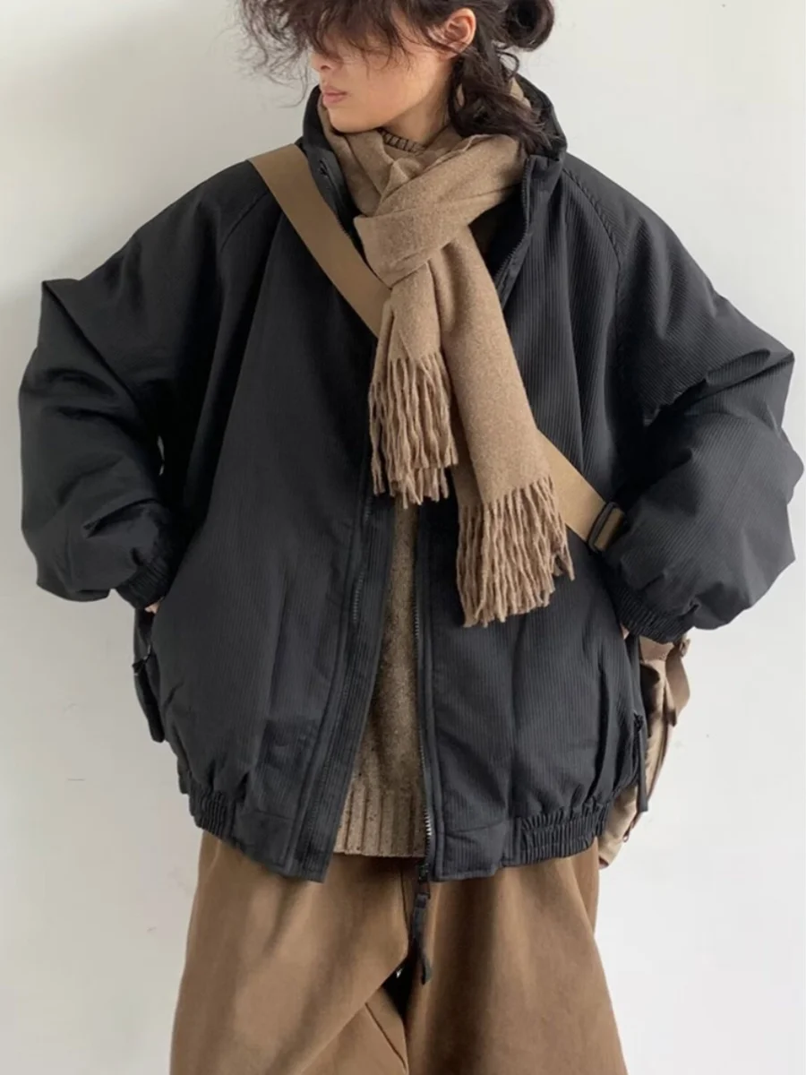 レトロな和風カジュアル縦縞ルーズフィットコットンジャケットユニセックス冬暖かいアウターウェアトレンディユースポップスタイル - TopDealBox