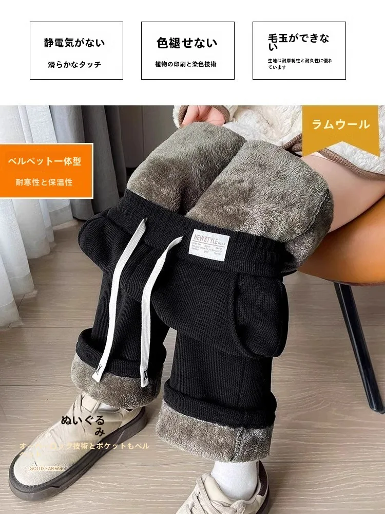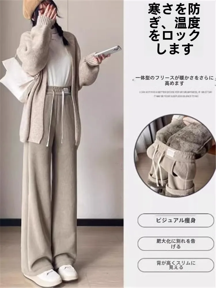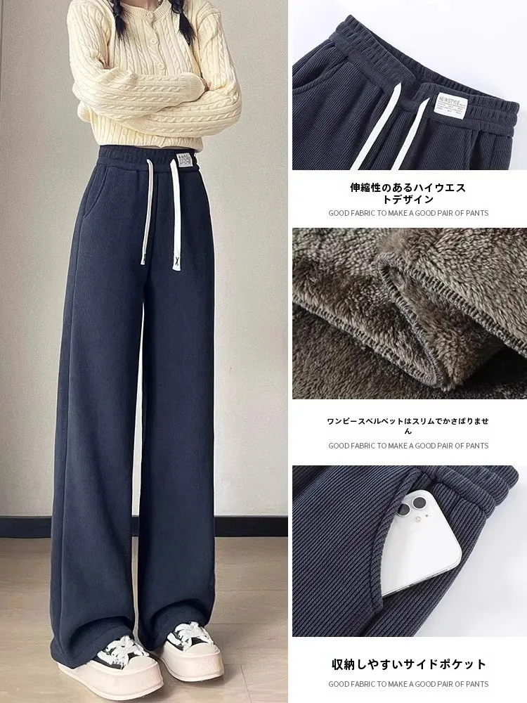 肥厚フリースワイドレッグパンツ女性のカジュアルストレートルーズフィット秋冬新スタイル多用途コーデュロイハイウエストズボン - TopDealBox