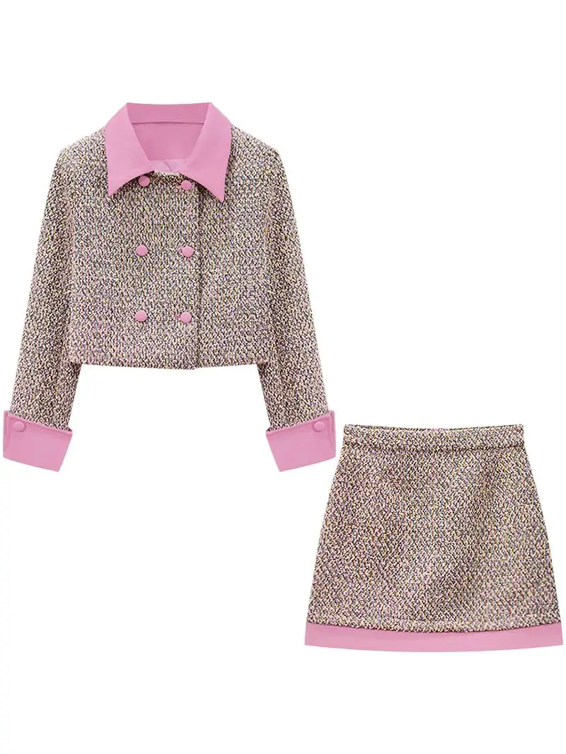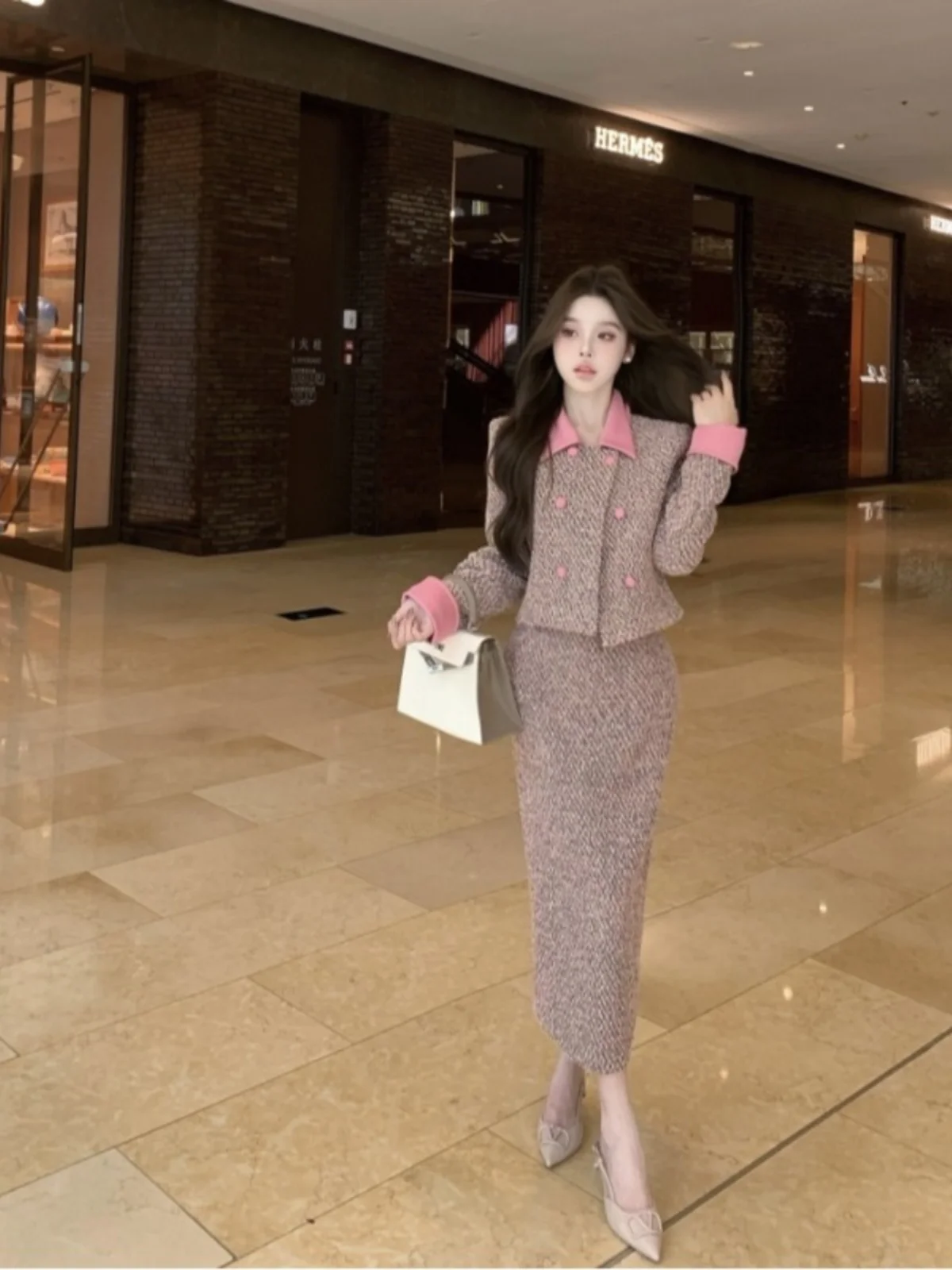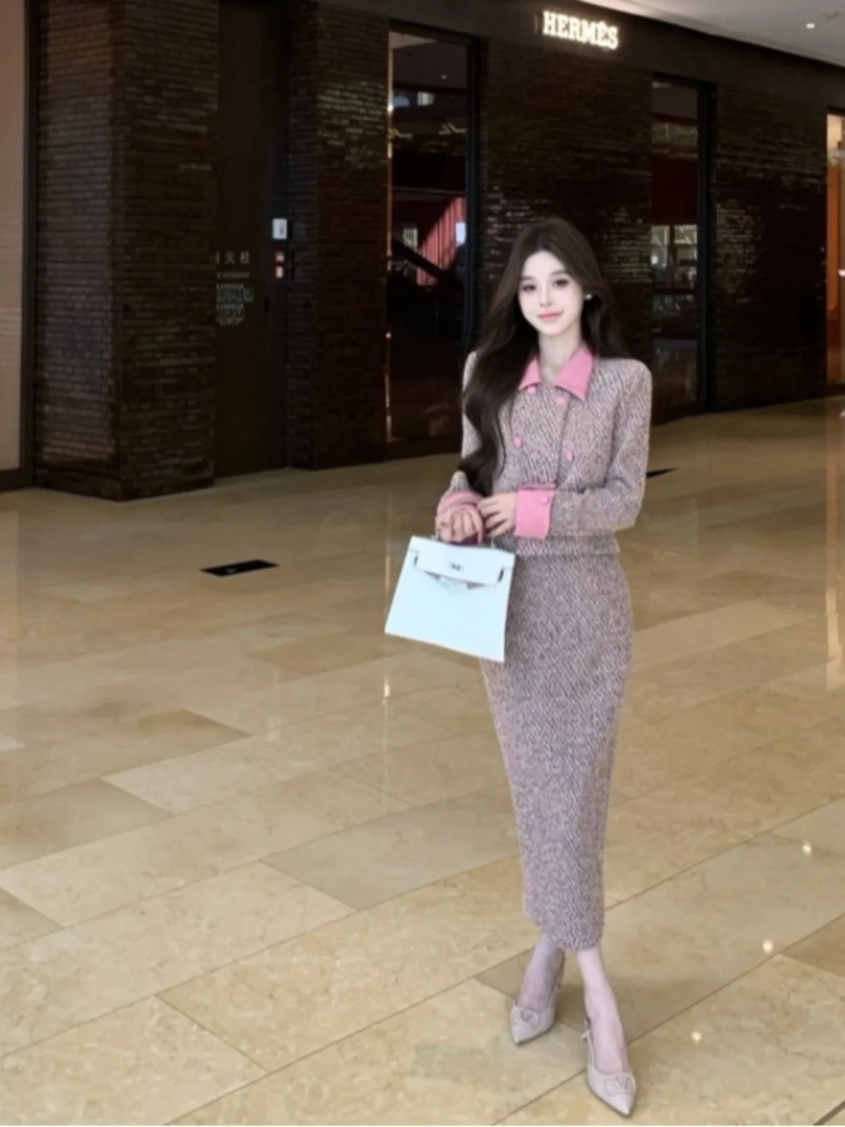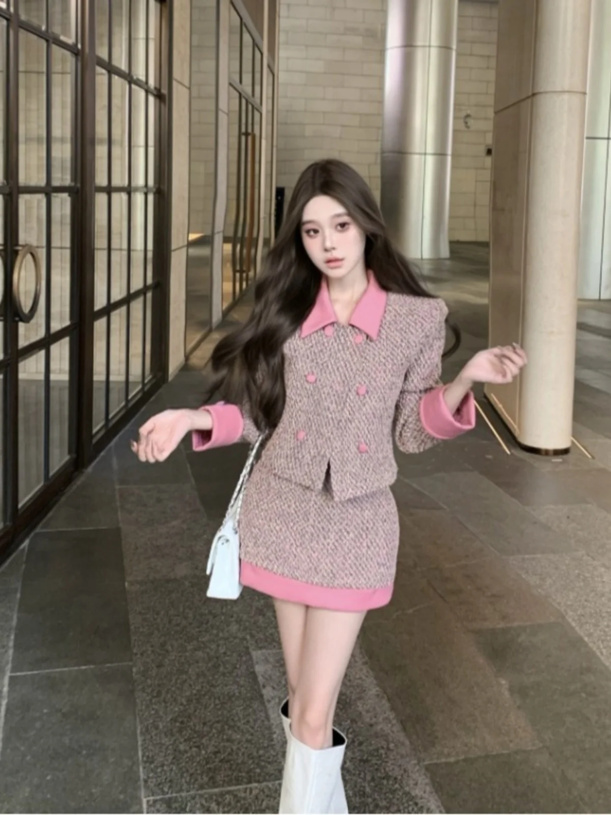 秋のファッションセット女性のための甘い襟長袖ジッパー痩身ミニスカート多用途年齢削減エレガントなスタイル - TopDealBox