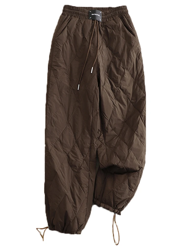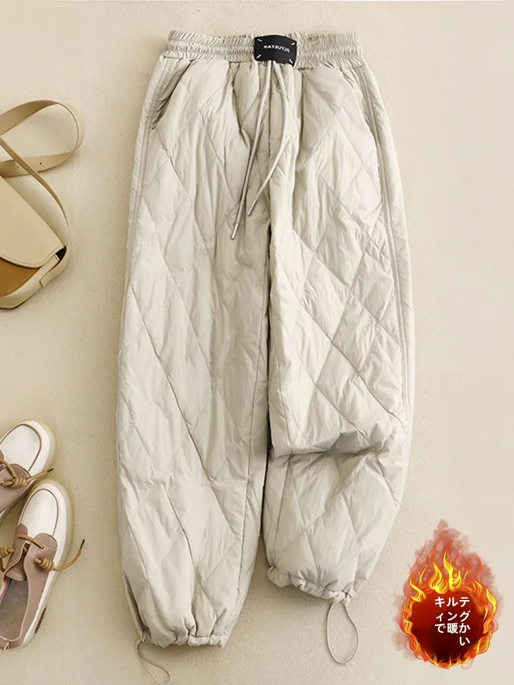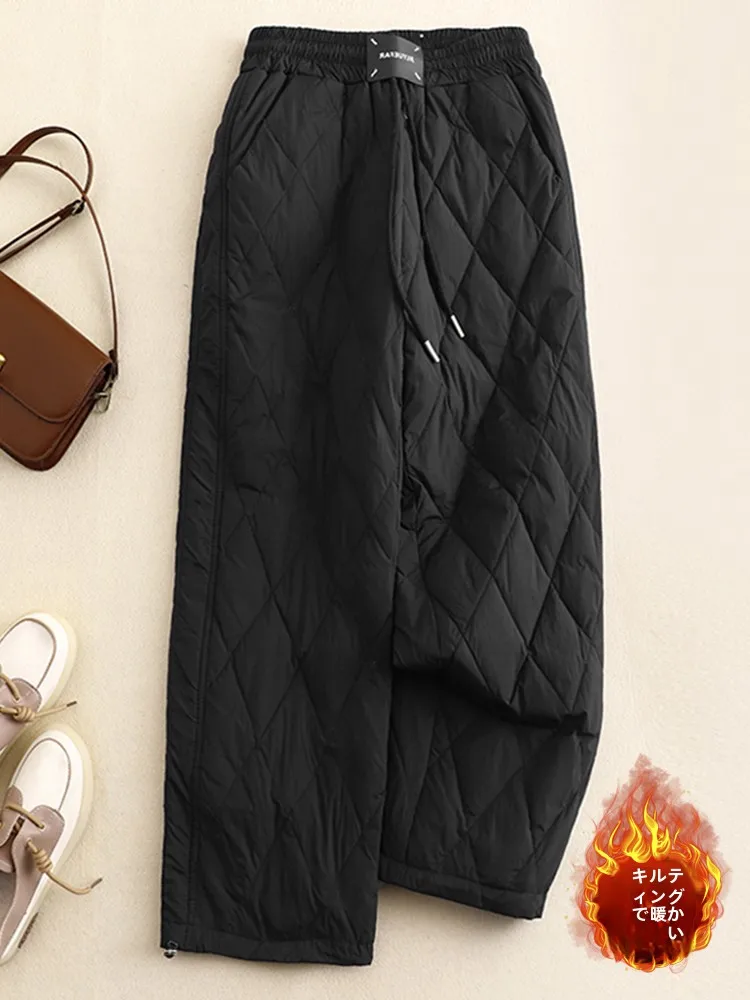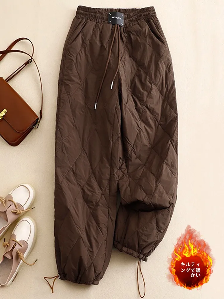 暖かい綿入りパンツストレートレッグカジュアル巾着ハイウエストプラスサイズの女性のファッショナブルなオールマッチ冬パンツ - TopDealBox