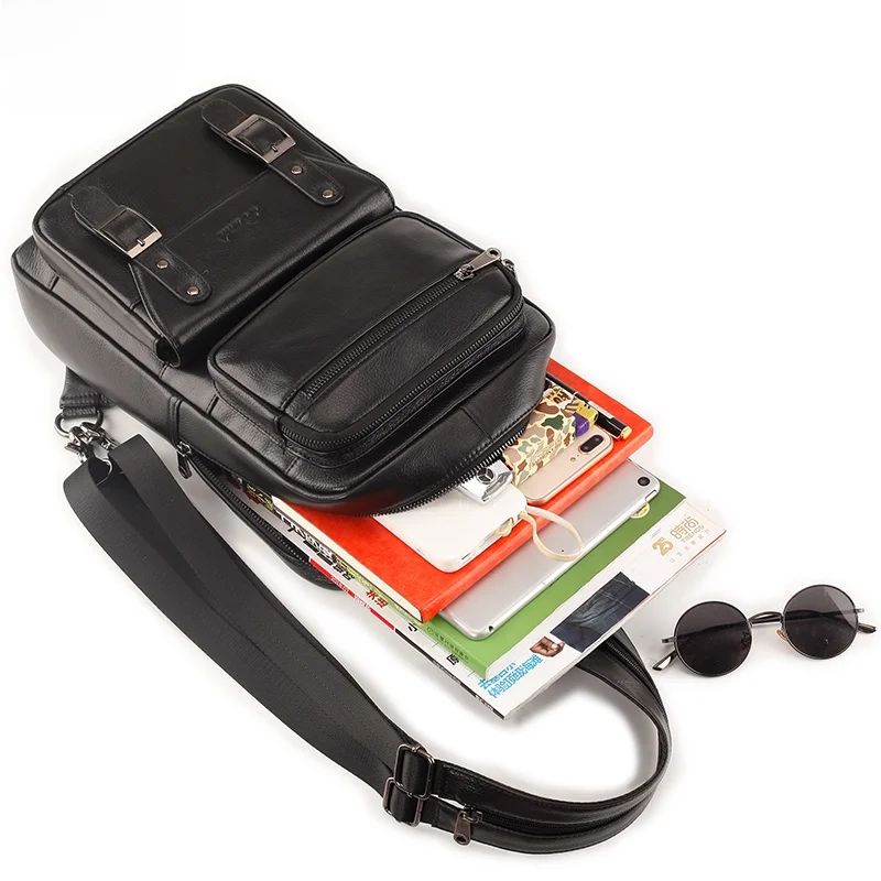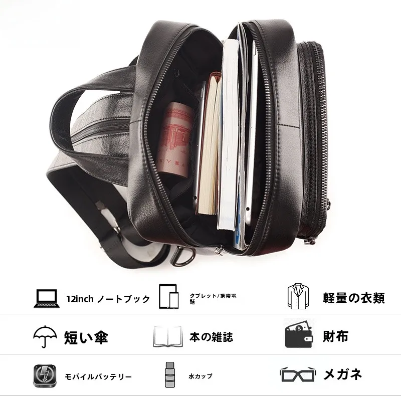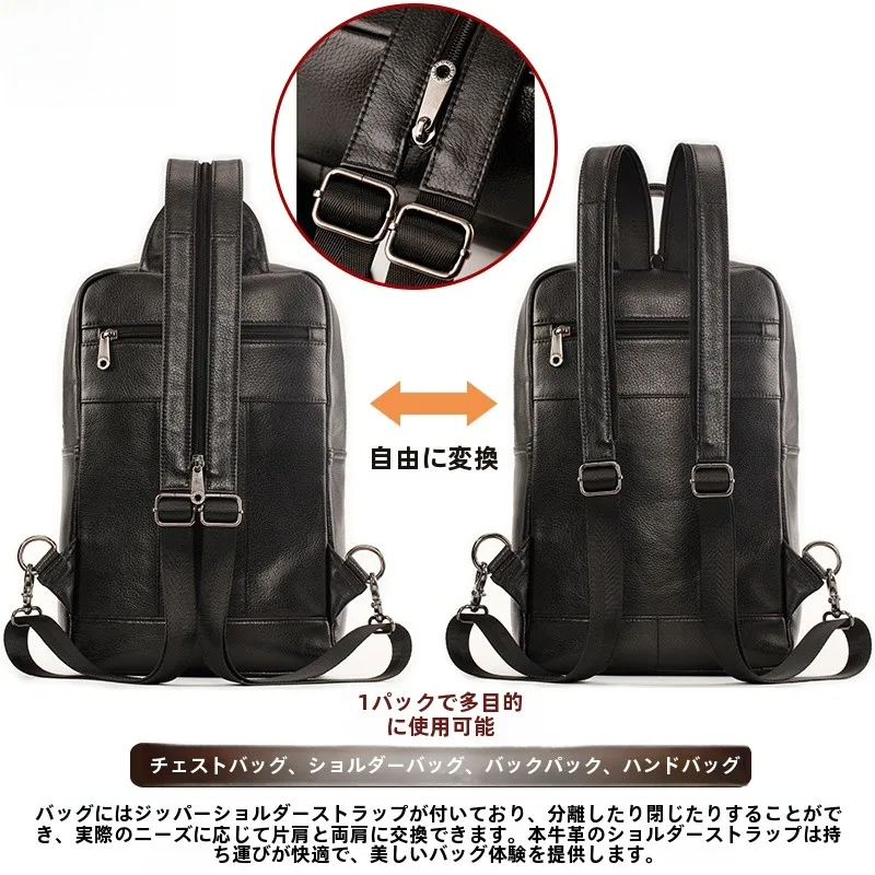 本牛革カジュアルショルダーバックパック大容量タブレットコンピュータバッグ縦型スタイルシングルショルダー斜めクロスチェストバッグ - TopDealBox