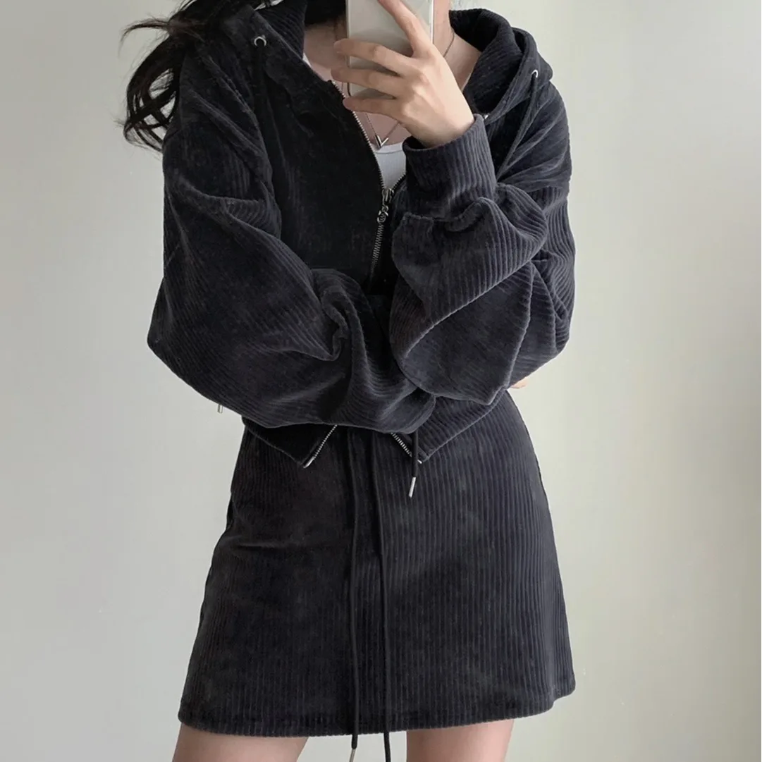 ♡Quick viewTRAFZA レディース 2 ピース レトロ ソリッド カラー ジッパー ボンバー ジャケット スウェットシャツ + ハイウエスト レースアップ レディース ルーズ ベルベット パンツ スーツ2242 JPYHot★★★★★★4.9