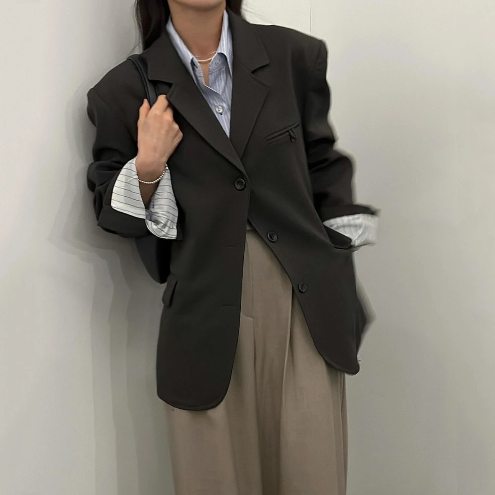 シックな初秋の新スタイルエレガントシンプルハイエンドスーツジャケット多用途通勤長袖ハイカラーフレアスリーブピュアカラー - TopDealBox