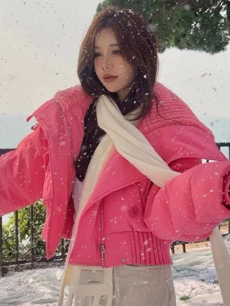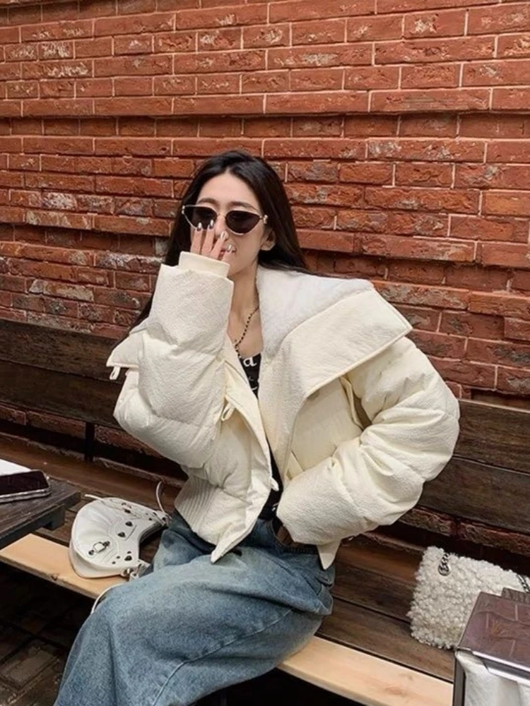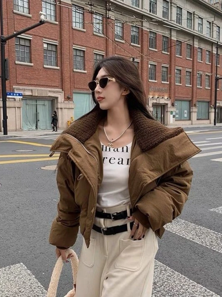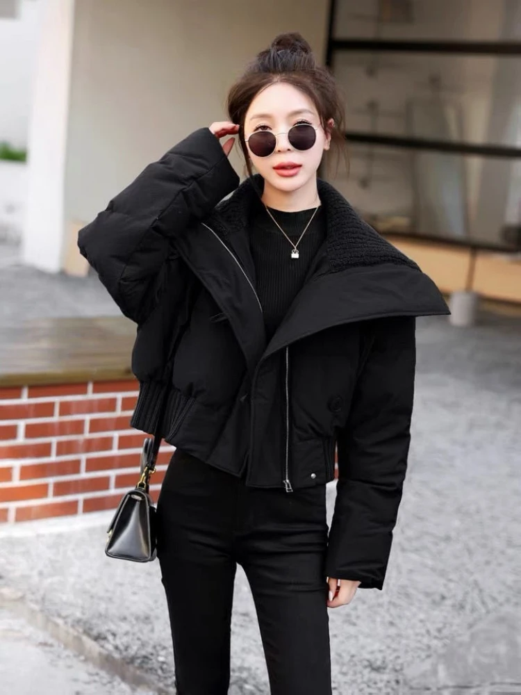 ファッショナブルなショートダウンコットンジャケット女性のスタイル秋冬肥厚甘いルーズフィットジッパー閉鎖無地コート - TopDealBox