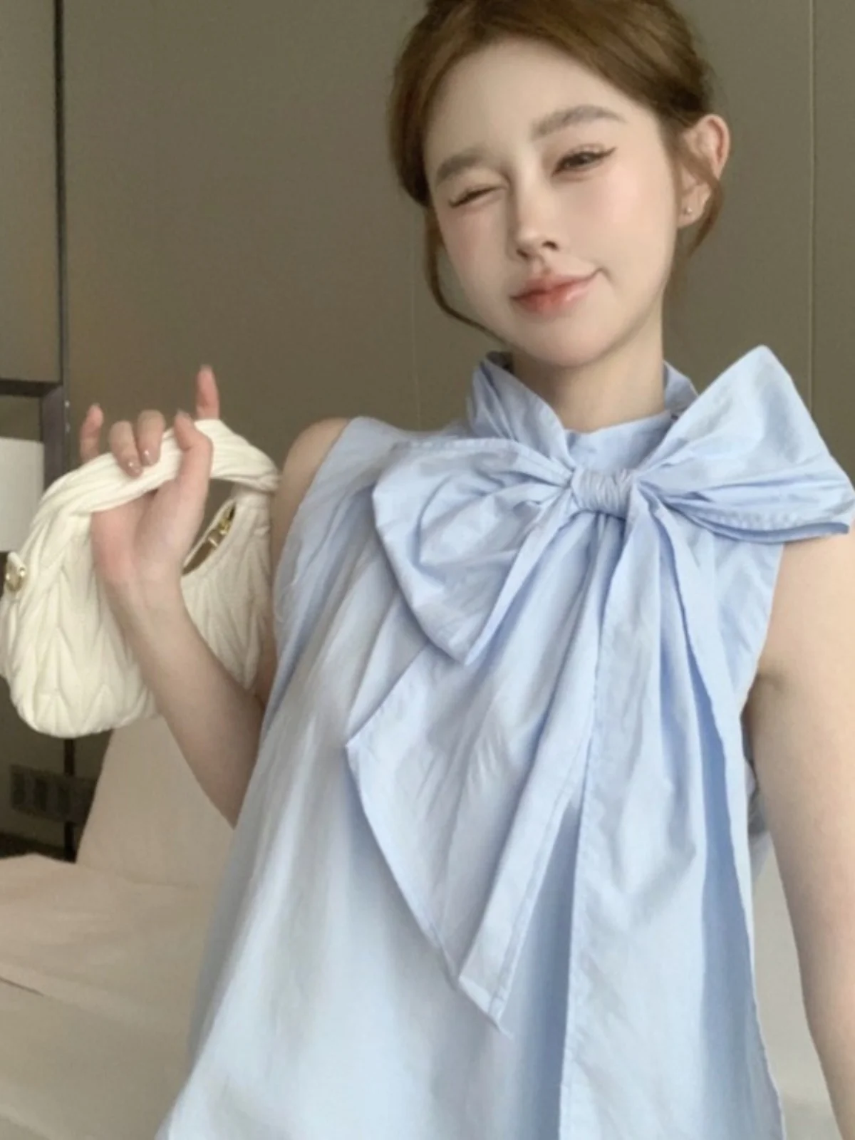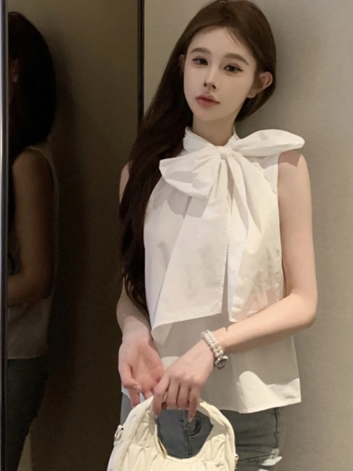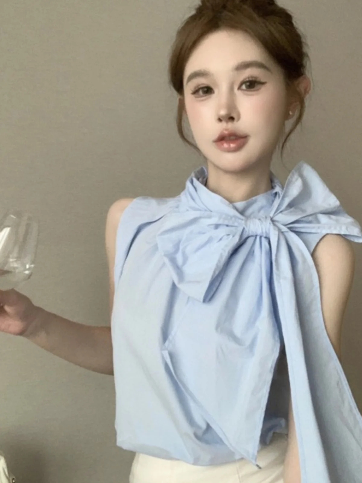 エレガントなサマーシャツベスト女性のファッショナブルなデザインセンセーションノースリーブ蝶ネクタイ蝶シャツベストトップニコールローズブランド - TopDealBox