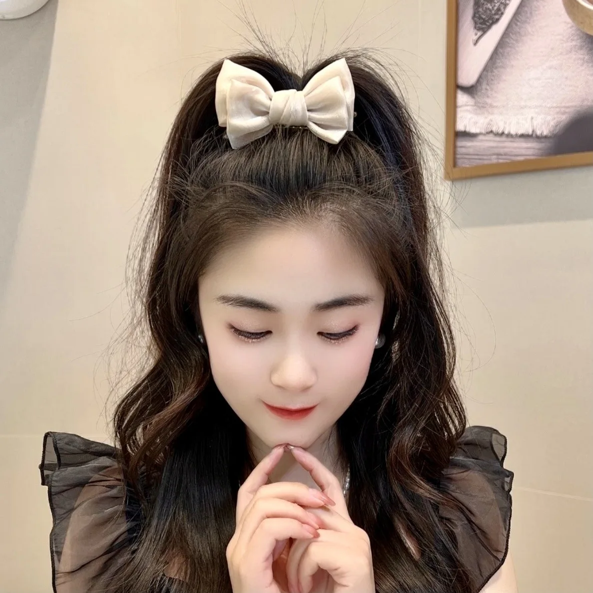 エレガントな両面メッシュボウクリップボールヘアクリップ新しいボウヘアクリップ女性後頭部ポニーテールクリップヘッドドレス - TopDealBox