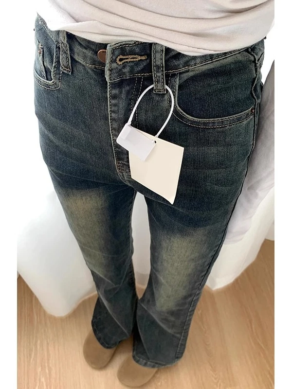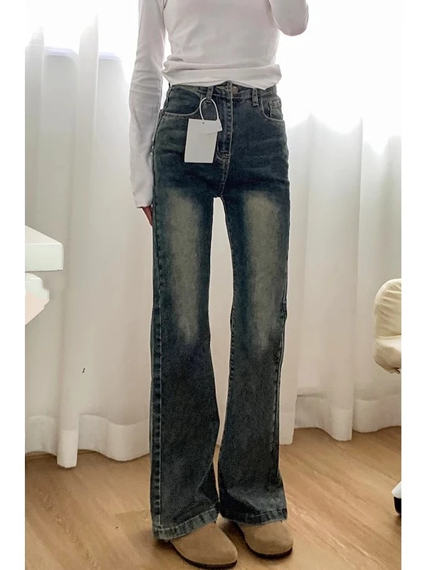 ハイウエストワイドレッグジーンズ女性の春秋スタイルブーツカットデニムパンツプラスサイズ隠しヒップ洋ナシ形ボディ痩身 - TopDealBox