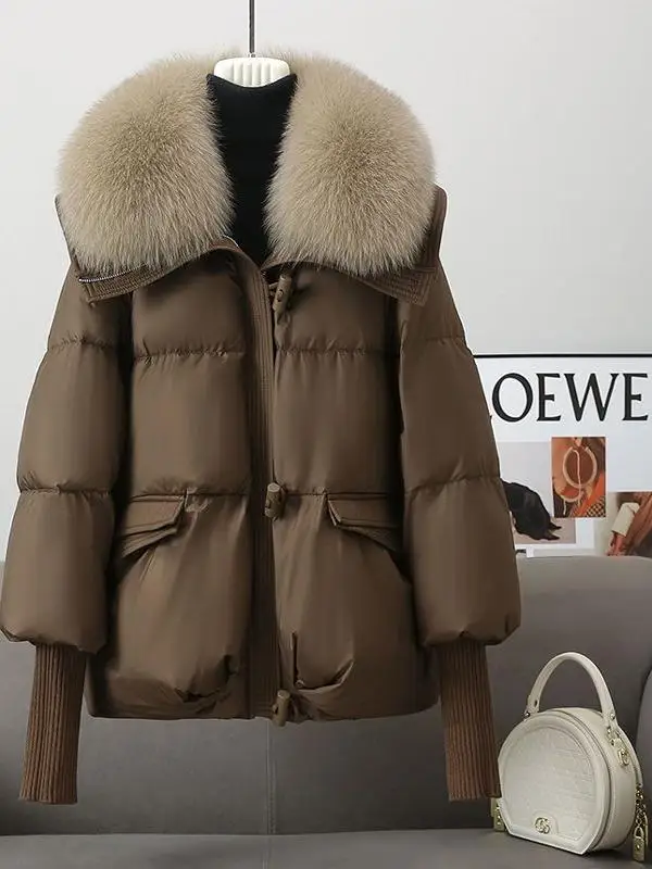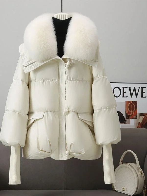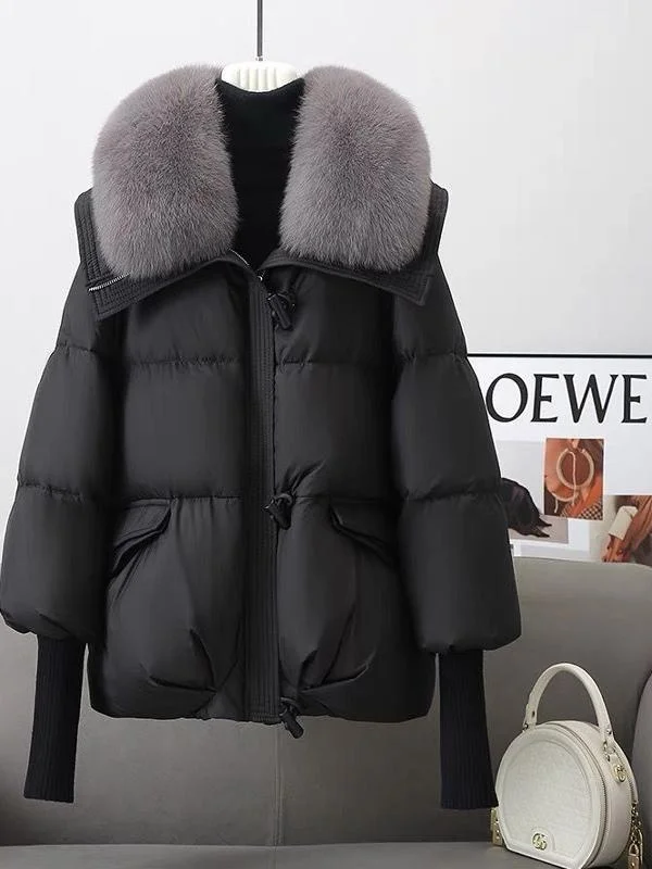 肥厚冬のジャケットの女性の韓国スタイルのルーズコットンフグコート毛皮の襟暖かい防寒アウター - TopDealBox