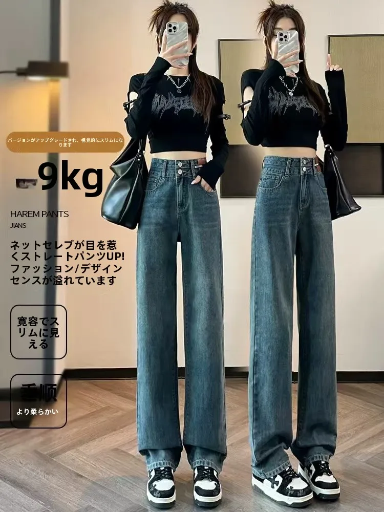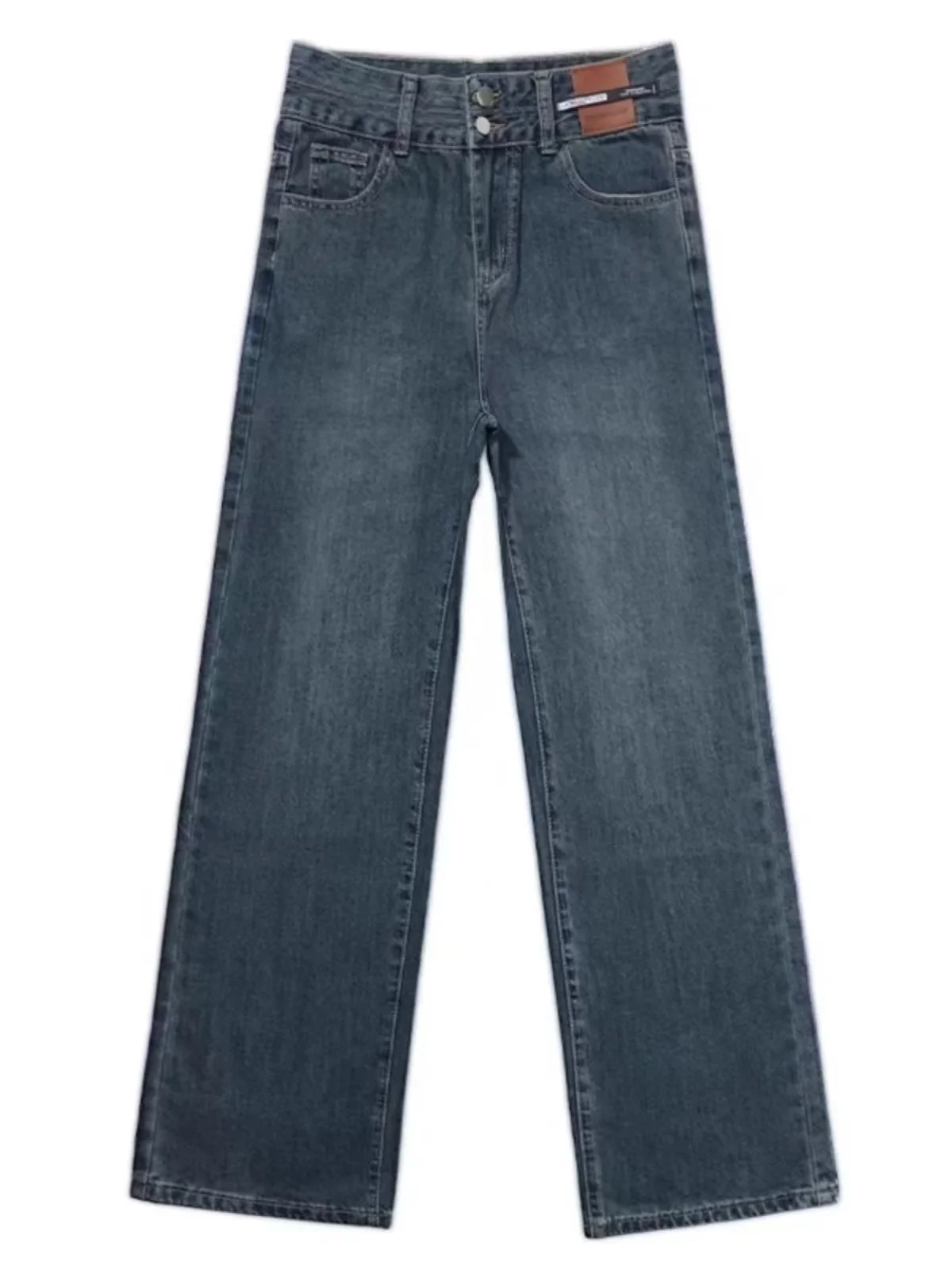 プラスサイズフリース裏地ワイドレッグジーンズ女性ハイウエストストレートカットルーズフィットフロアレングスパンツ秋冬セメントグレー - TopDealBox