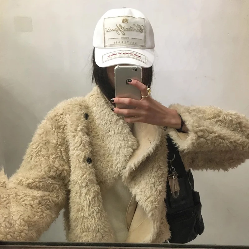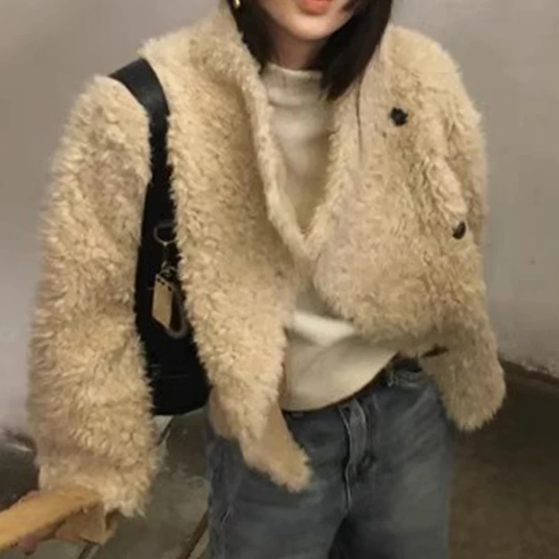 シックな秋冬ヴィンテージ両面着用ラムファーレザージャケットスタンドカラー長袖女性のショートコート韓国スタイル - TopDealBox