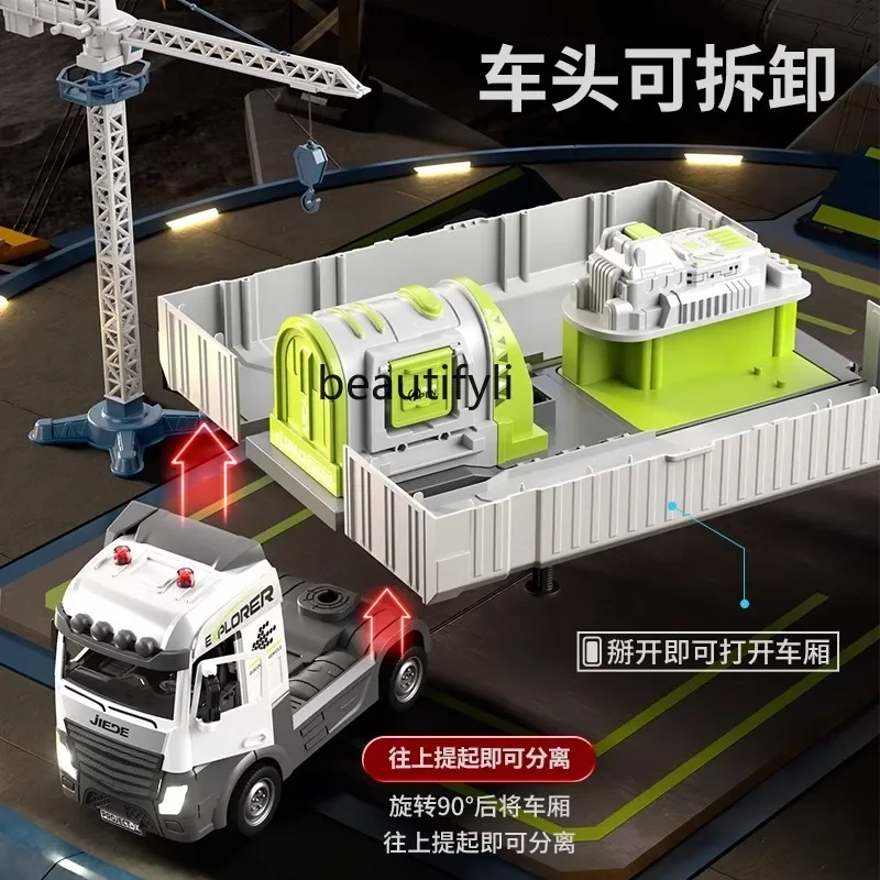 子供用合金トラックおもちゃ,コンテナプロジェクト,車,クレーン - TopDealBox