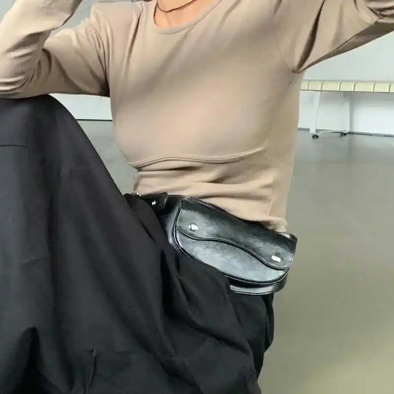 ファッショナブルなミニポケットウエストバッグ多機能レザーベルトオートバイチェストバッグトレンディなコンパクトサイズカジュアルピュアカラー - TopDealBox