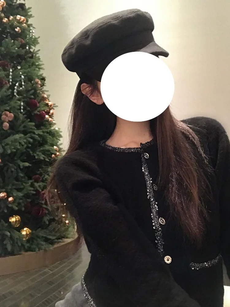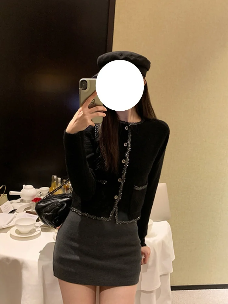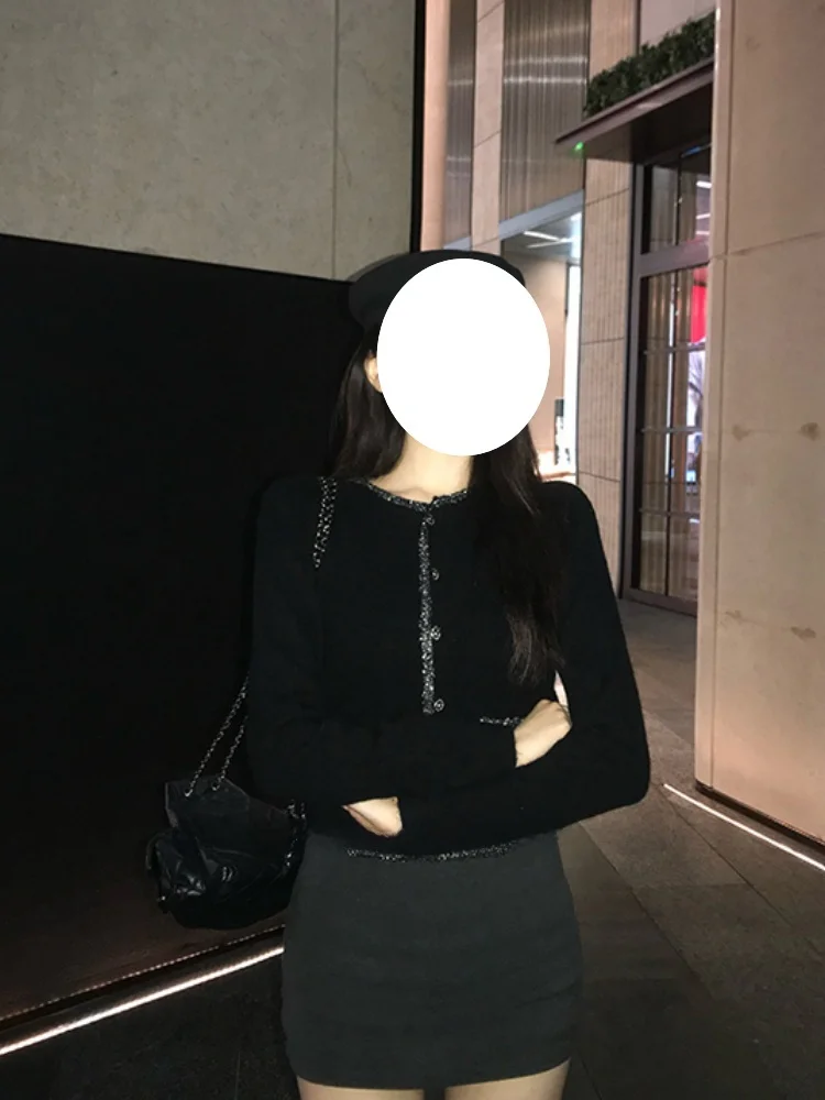 黒のショートニットセーター女性の秋冬ルーズ痩身長袖ソフト快適トップ韓国スタイル通勤ファッション - TopDealBox