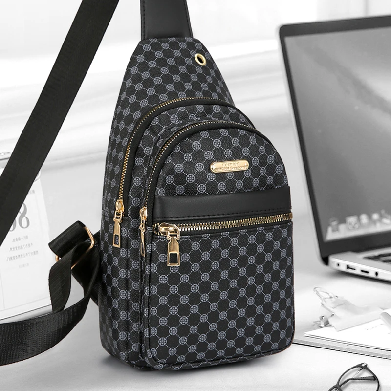 カジュアル通勤ソフトレザーチェストバッグクロスボディバッグユニセックス大容量ブラックウエストバッグファッショナブルなオールマッチレジャーバッグ - TopDealBox