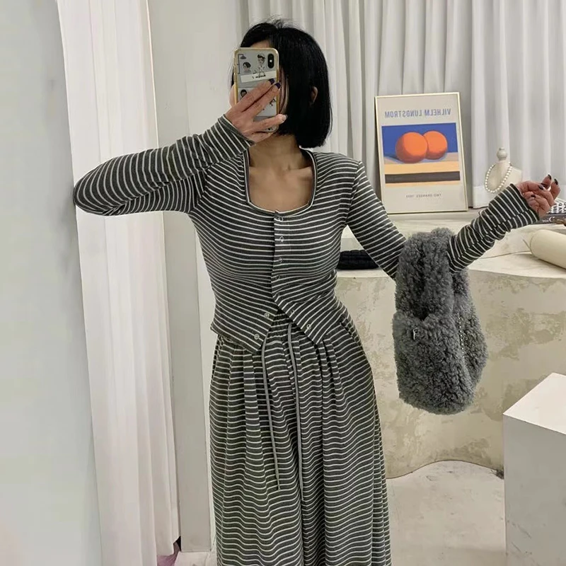 ♡Quick viewTRAFZA 女性 2 点セット V ネックノースリーブボタンニットベストトップ + エレガントなスプライシングハイウエストジッパーロングスカートホリデースーツ2485 JPYHot★★★★★★4.6