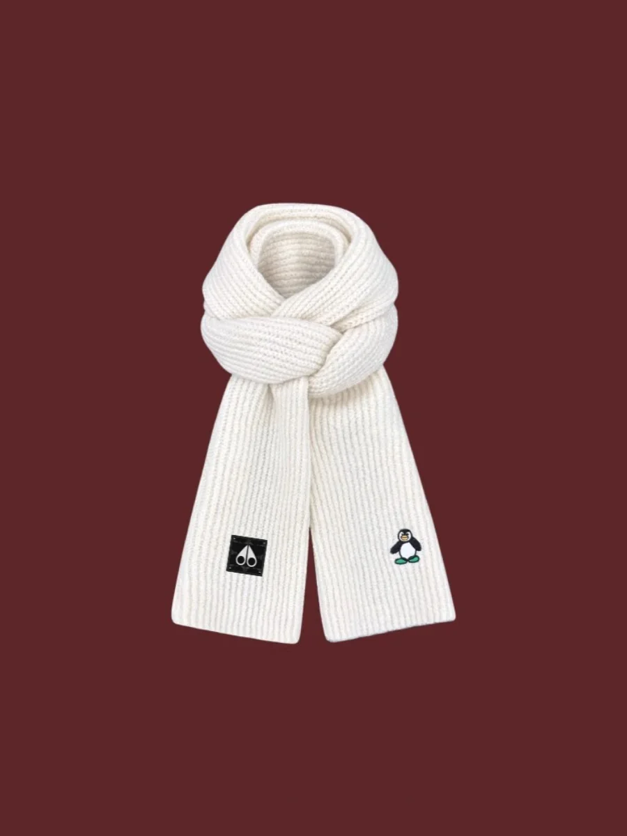 ムースキングシップかわいいペンギン刺繍スカーフ女性の秋冬暖かいトレンディな学生ファッションアクセサリーポケットハンカチ - TopDealBox