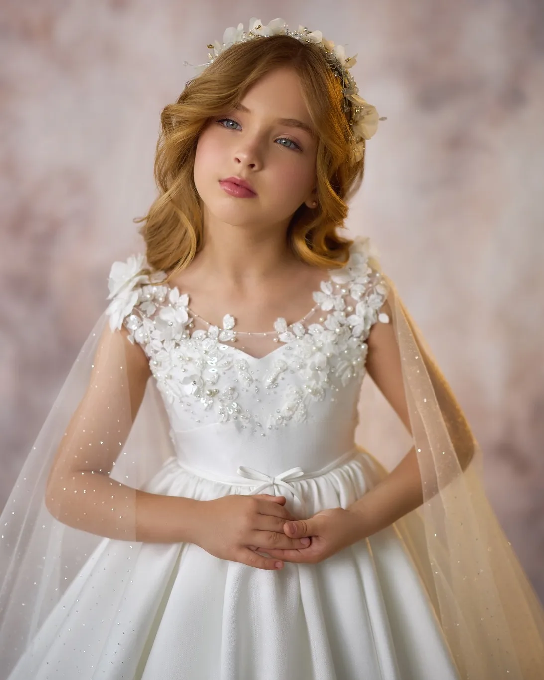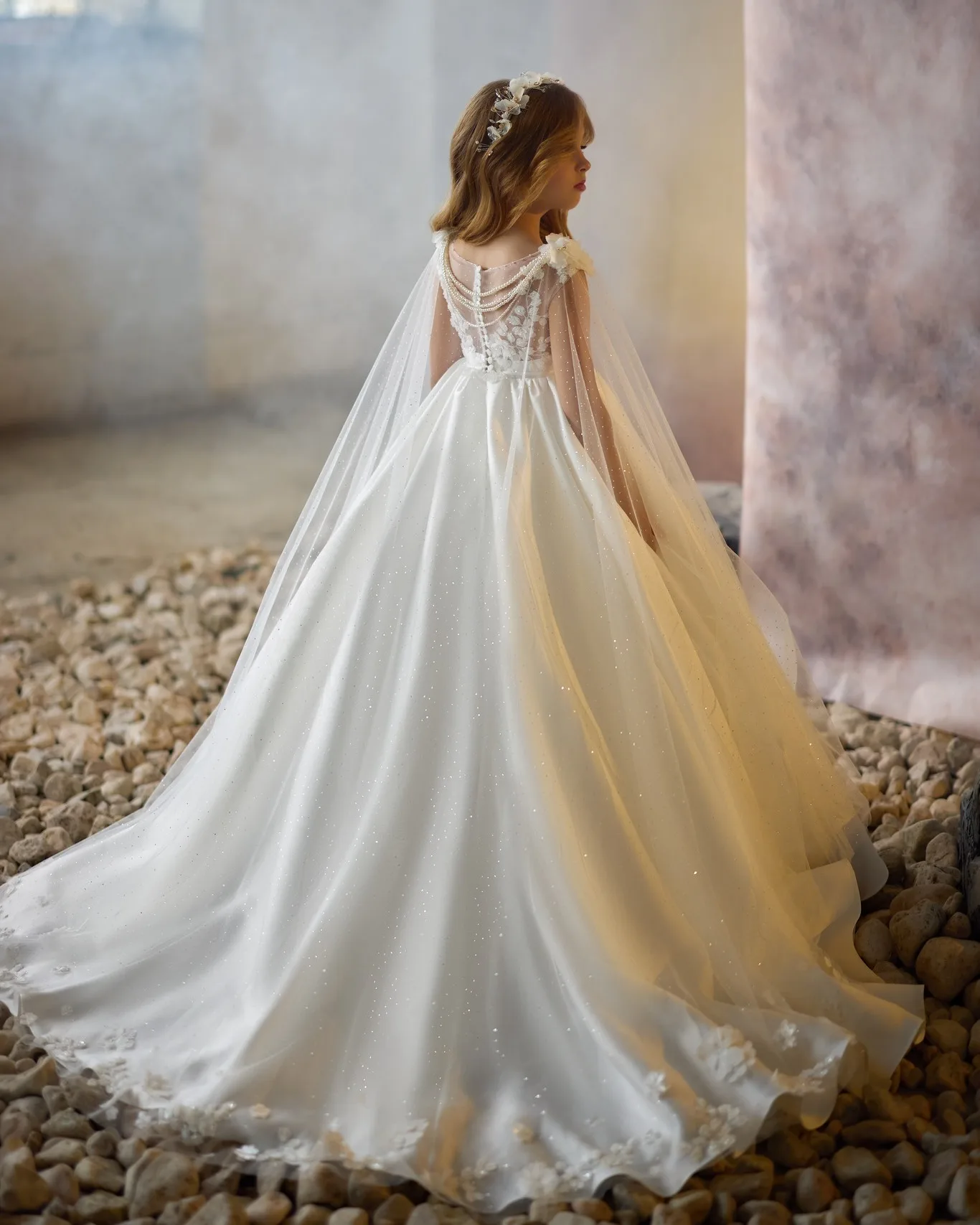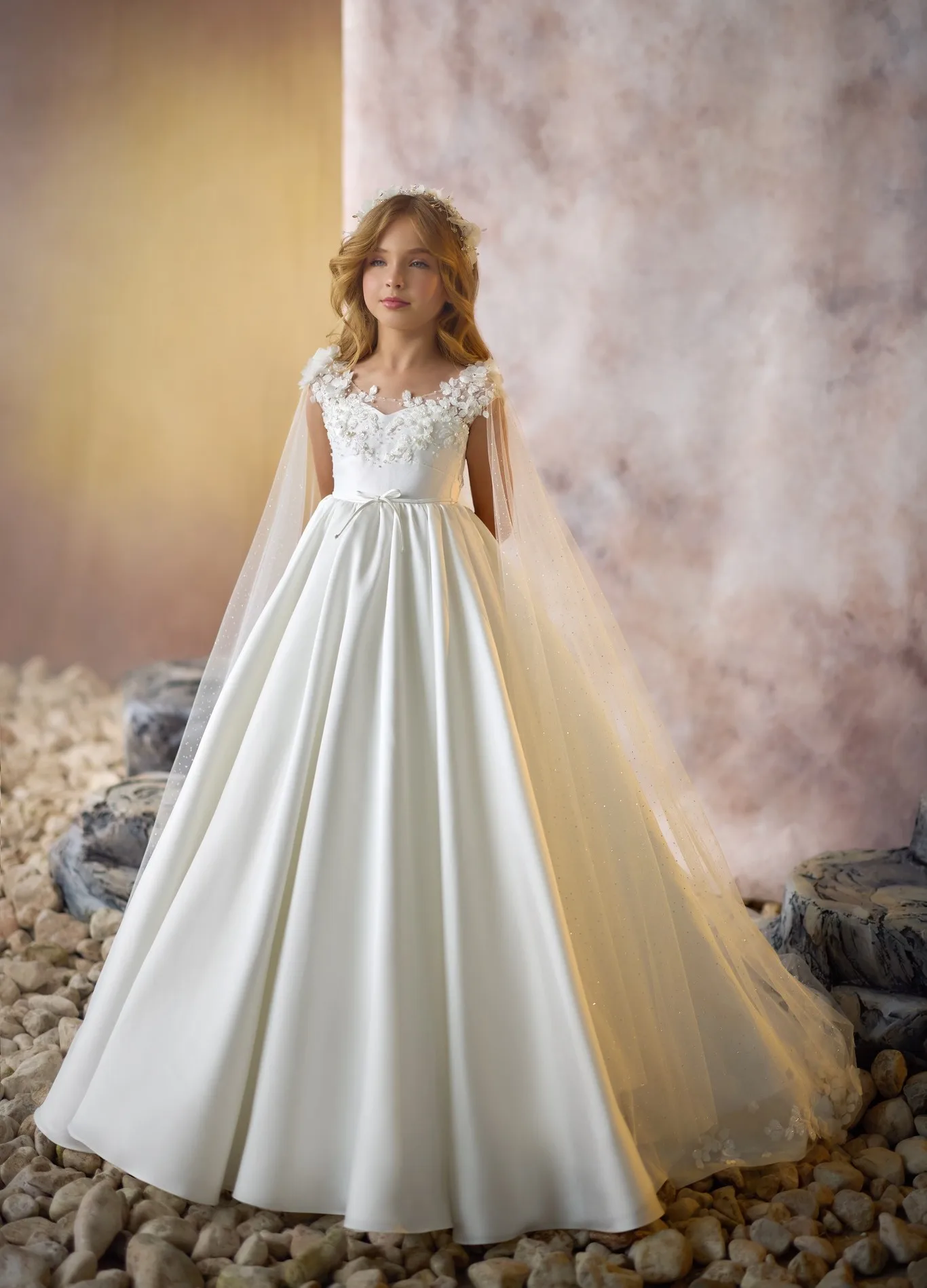 女の子のためのラップ付きのエレガントな白い花のドレス,アップリケ付きのリター,誕生日パーティーのドレス,赤ちゃんの最初の聖体拝領ドレス,カスタマイズ - TopDealBox