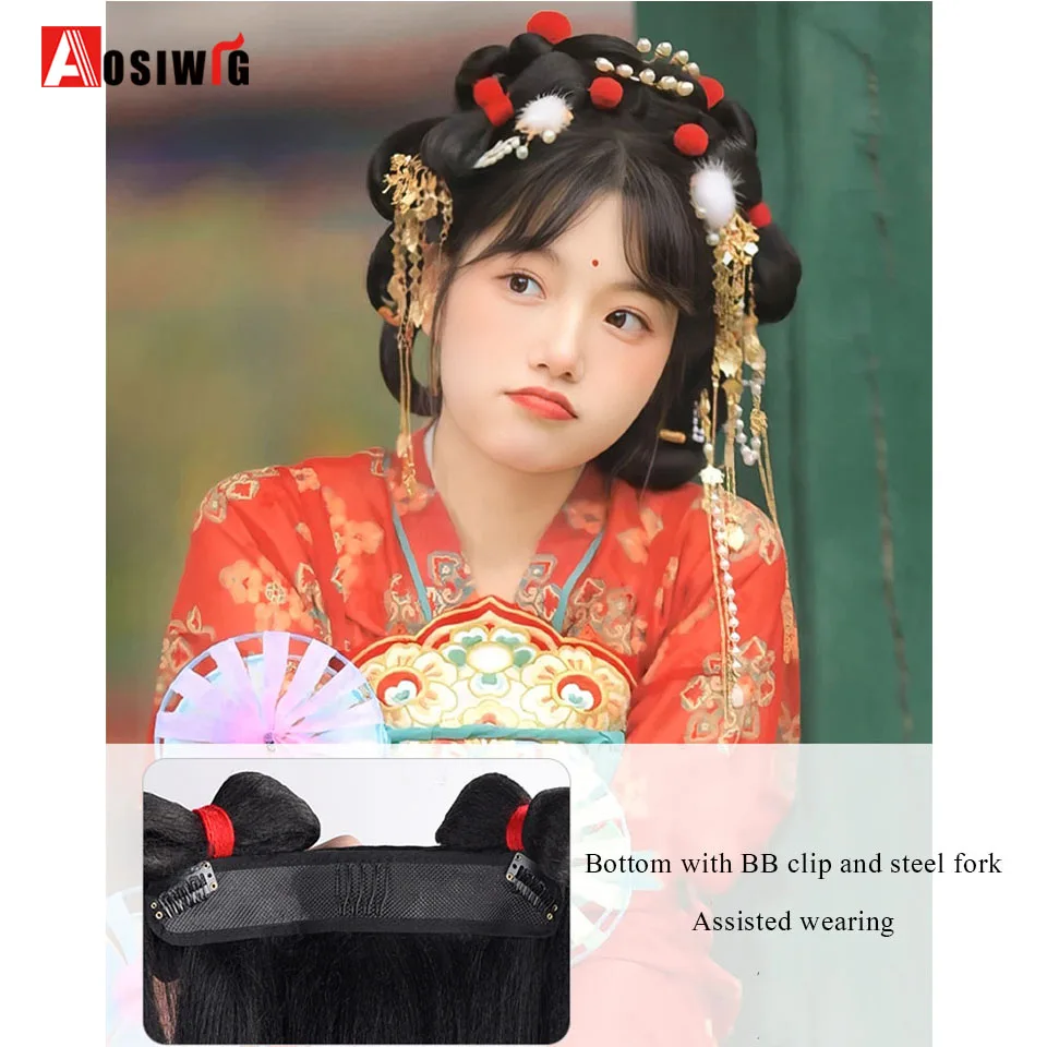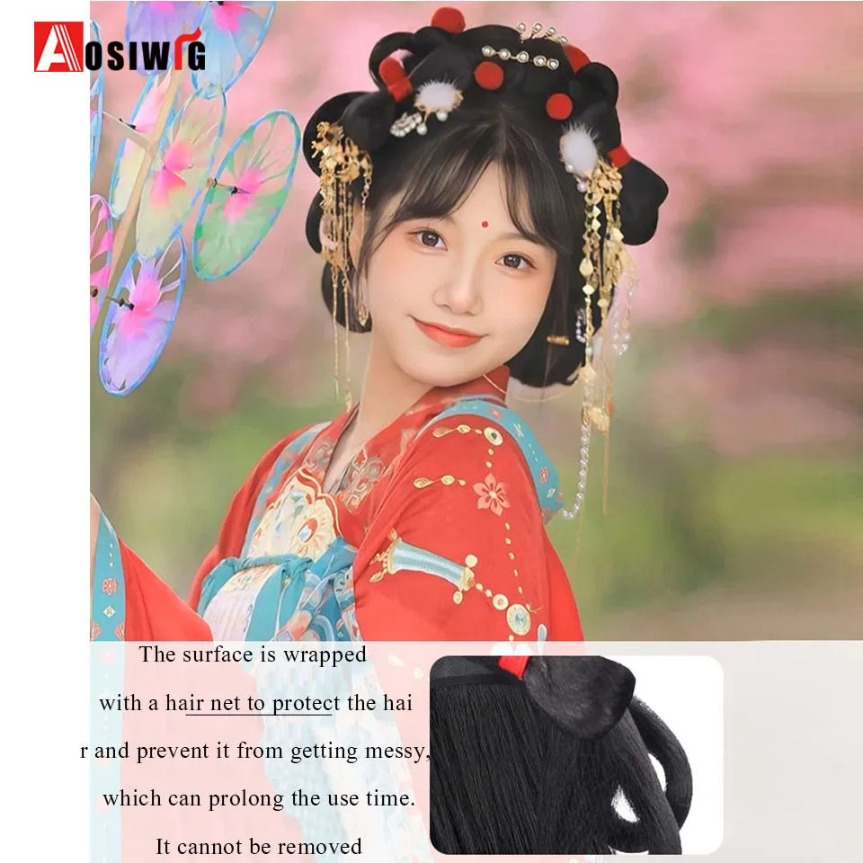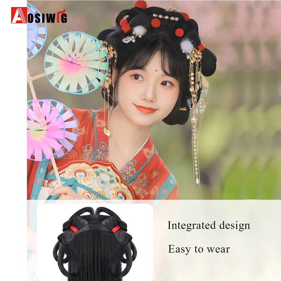 女性のための古代合成かつら,黒のヘアピース,写真アクセサリー,ダンスアクセサリー - TopDealBox