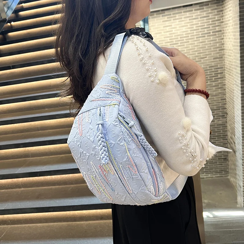 かわいいカジュアルクロスボディバッグソフトナイロンピュアカラージッパー開閉ユニセックス小型レジャーバックパック大学生用 - TopDealBox