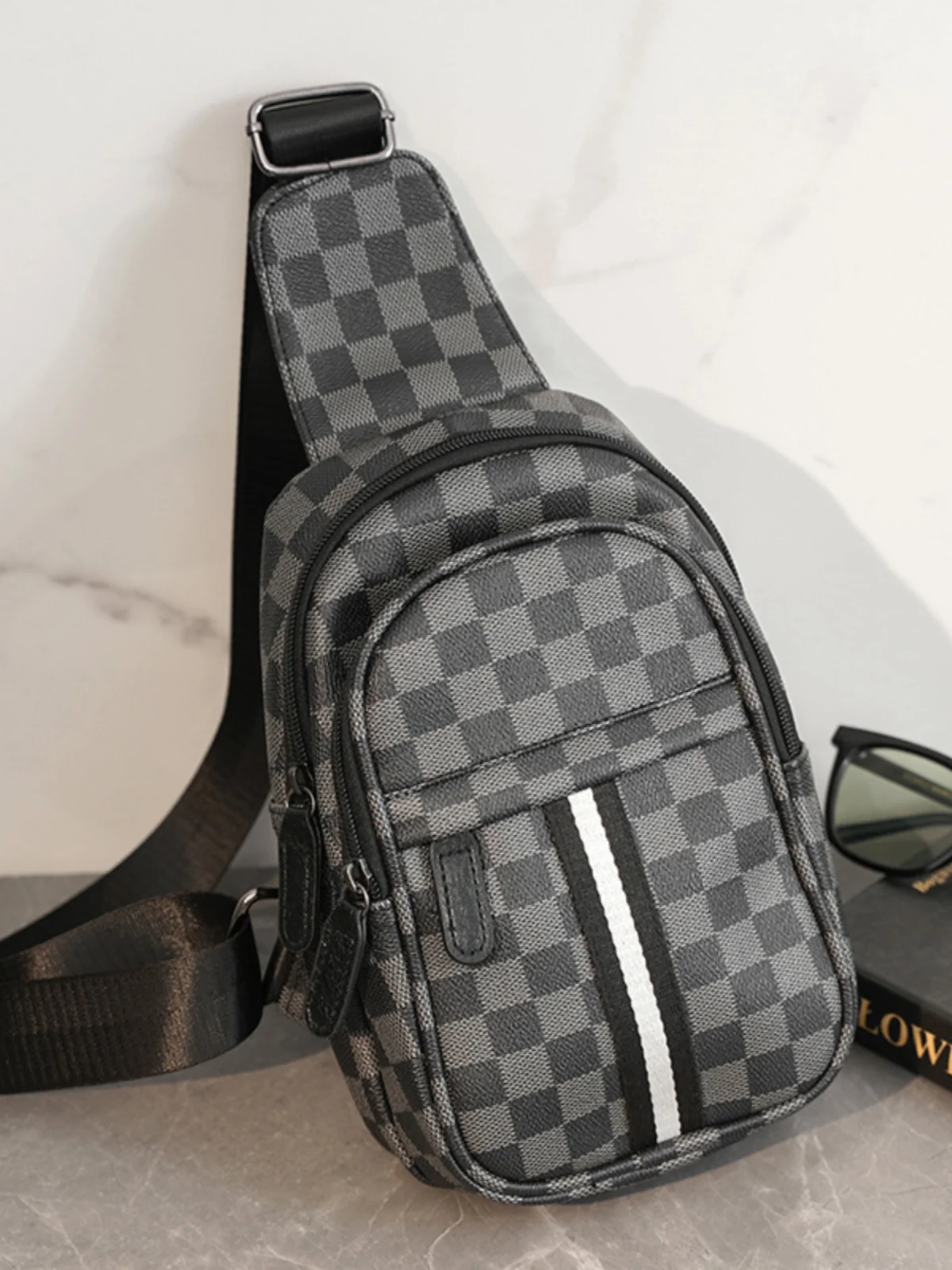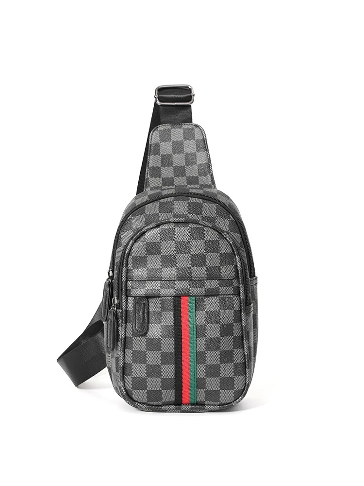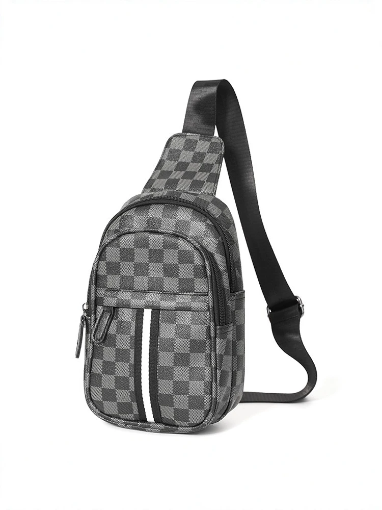 ファッショナブルな小さなチェストバッグクリーンノックトレンディなチェック柄バックパックシングルショルダーバッグストリートスタイルトラベルバッグ男性と女性のための - TopDealBox