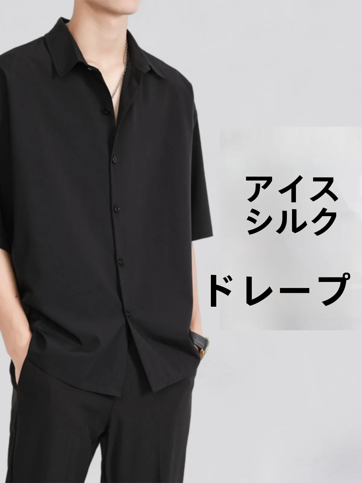 アイスシルク メンズ 半袖シャツ カジュアル 夏 トレンド ブランド ルーズフィット 若々しい ブラック カジュアル アウター 四分袖/五分袖デザイン - TopDealBox