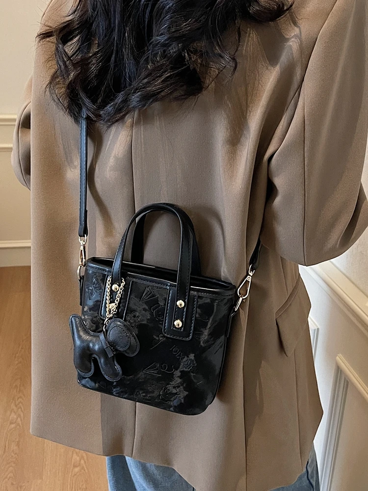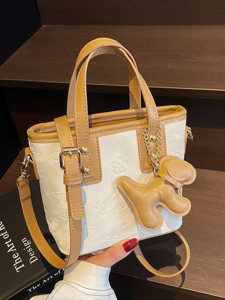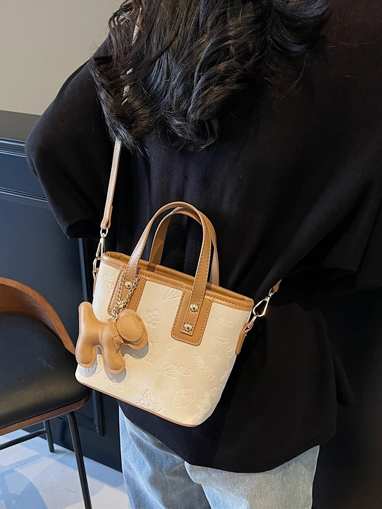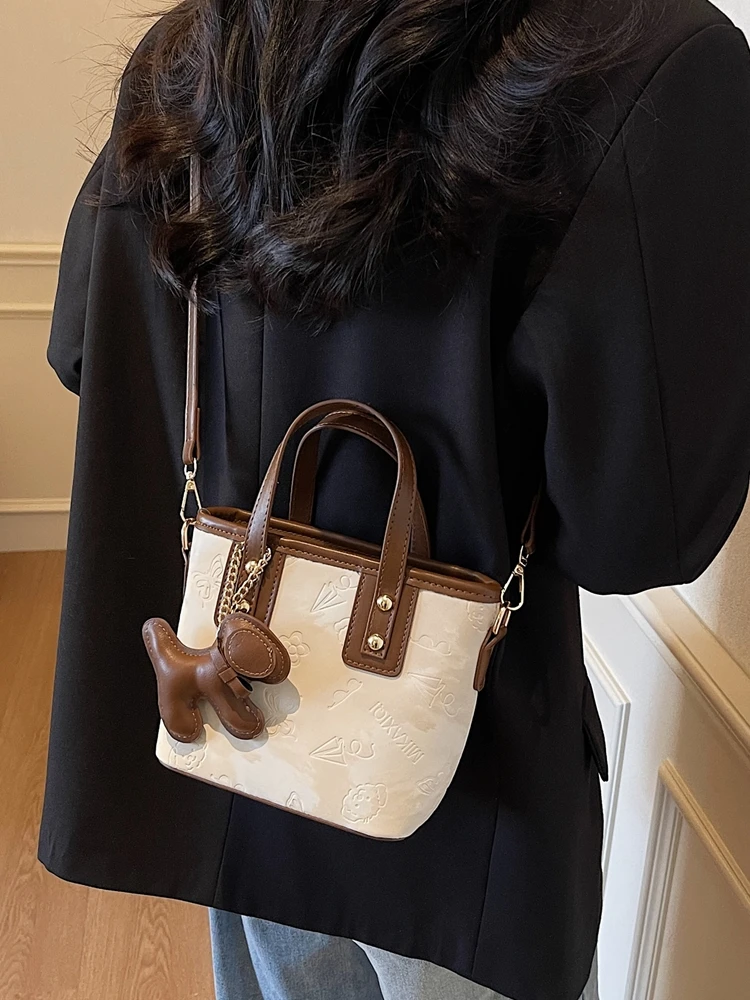ファッショナブルなコントラストカラーエンボス加工小さなクロスボディバッグ女性のカジュアル多用途バケットバッグハンドバッグソフトポリエステル裏地 - TopDealBox