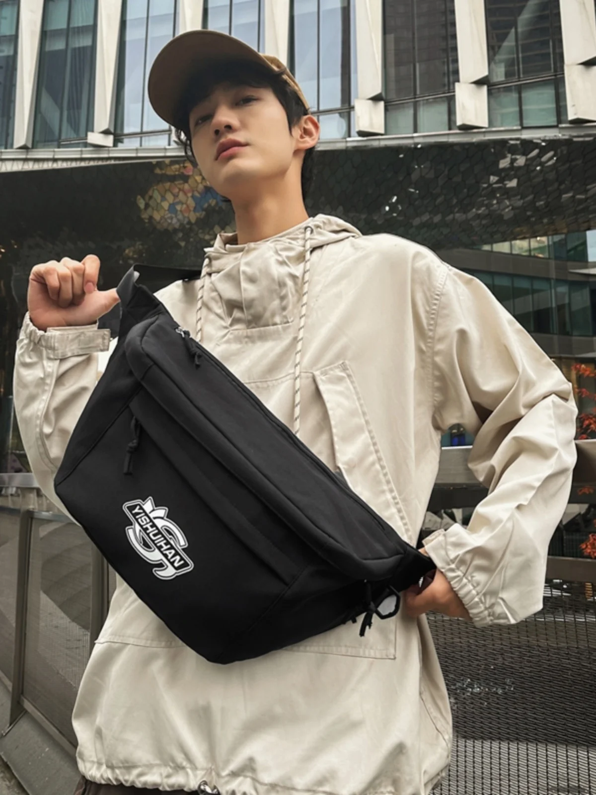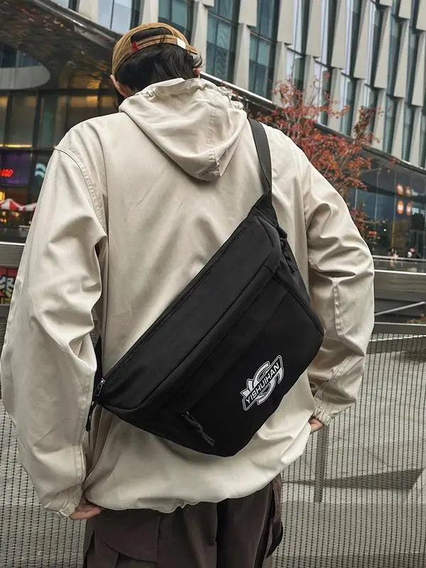 大容量スポーツサイクリングクロスボディバッグユニセックス学生ストリートスタイルチェストバッグソフトナイロン素材ジッパー開閉折りたたみ式 - TopDealBox