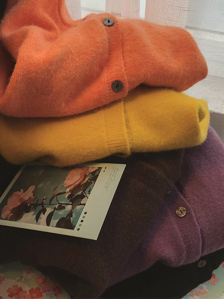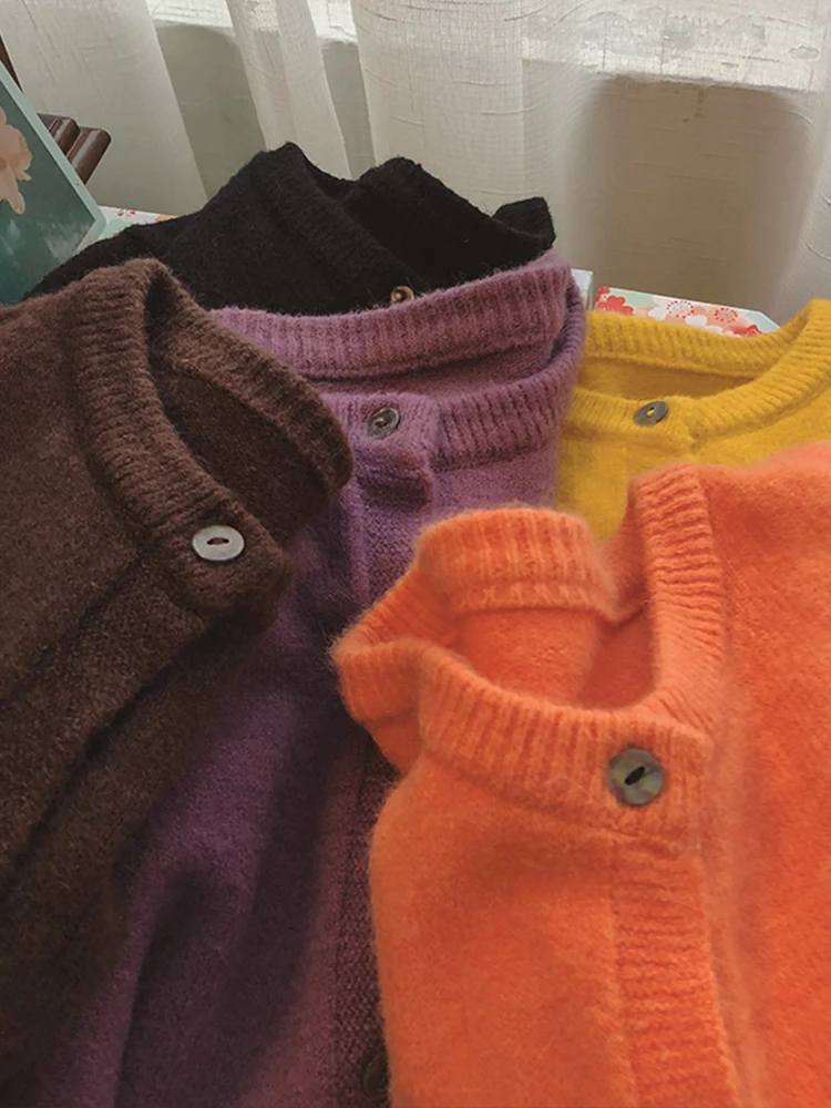 カジュアルラウンドネックカシミヤニットオープンカーディガン女性の秋冬アウターウェアセータージャケットストレート韓国スタイル長袖 - TopDealBox