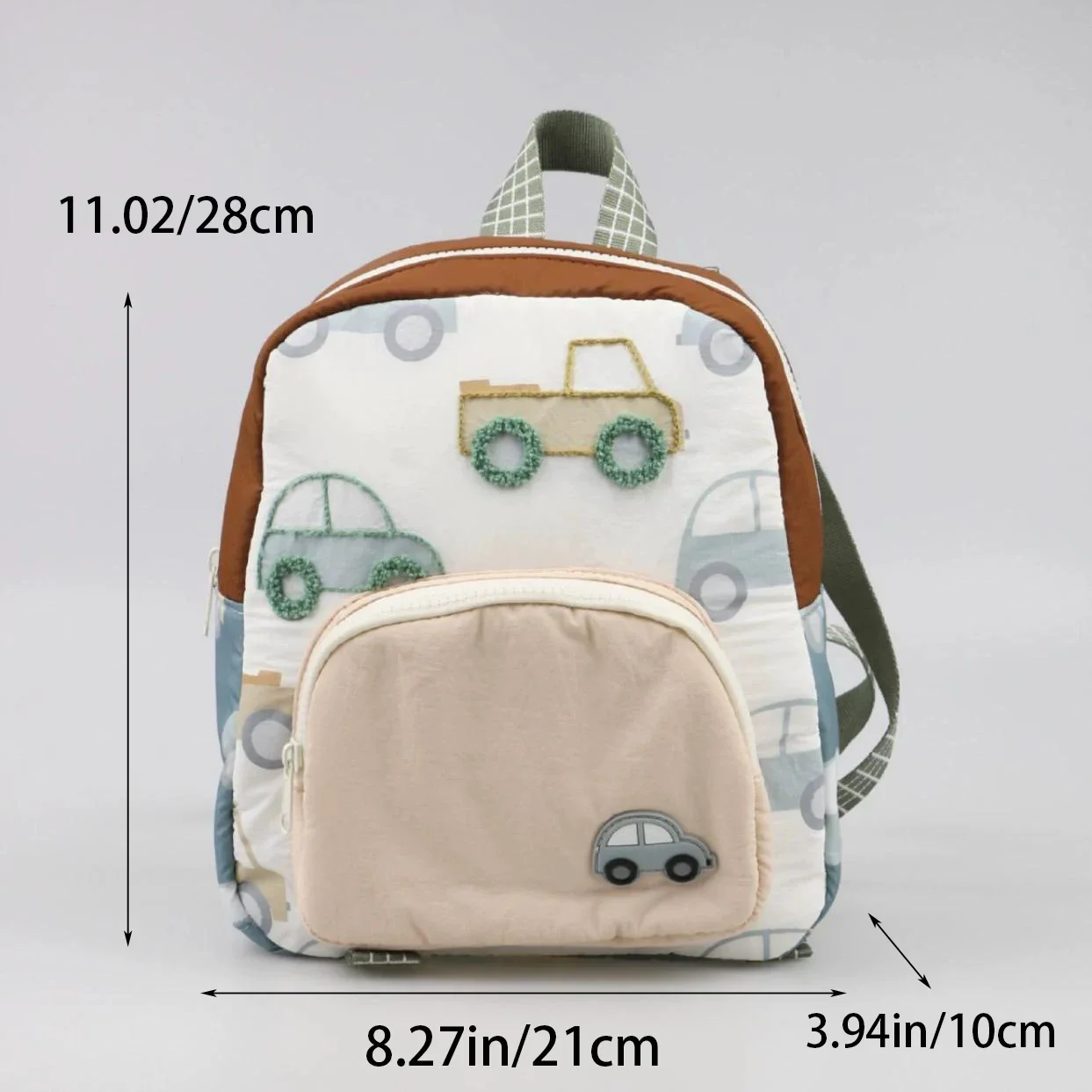新しい小さな車の刺繍入りバックパックかわいい軽量子供用スクールバッグ漫画幼稚園バックパック