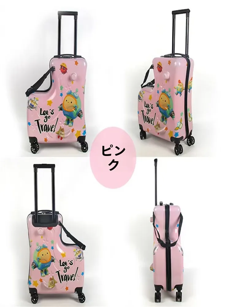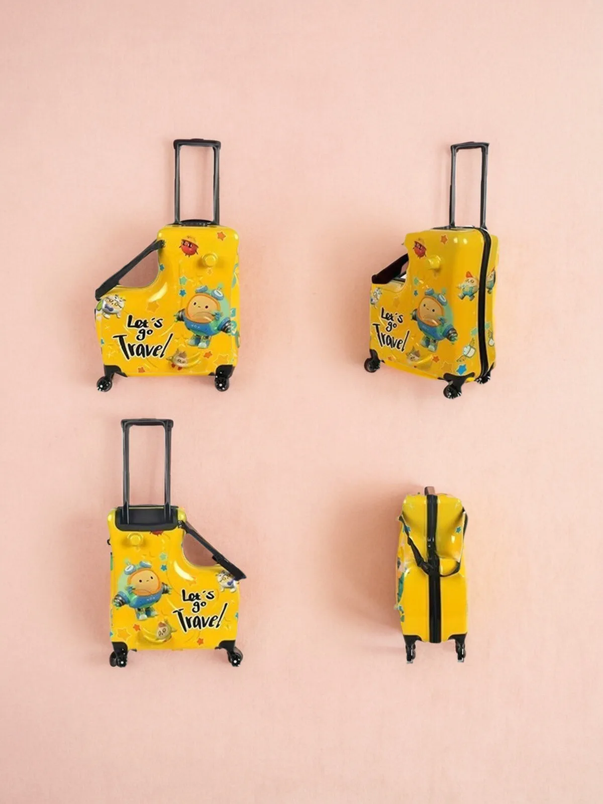 子供用キャリーオンスーツケース、漫画柄トラベルバッグ、ホイールとハンドル付き、子供が座って乗れる、おしゃれなユニバーサルホイール - TopDealBox