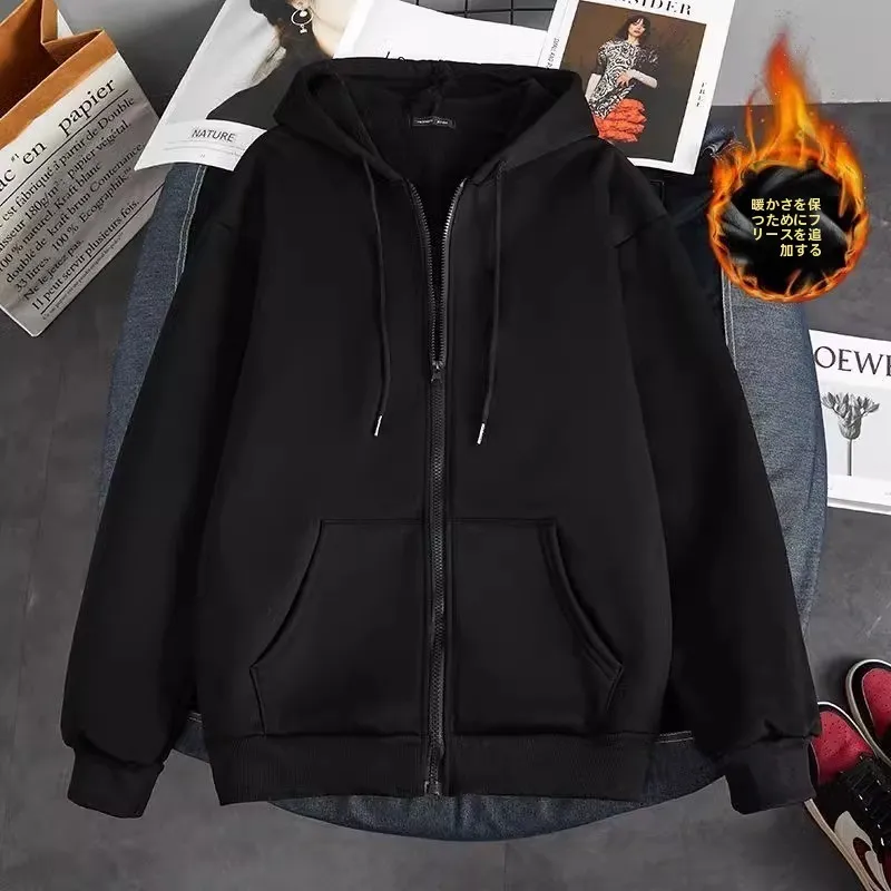 メンズ特大フリース裏地付きフード付きジッパーカーディガンセーター仕事用秋冬暖かい汚れにくいカジュアルウェア - TopDealBox