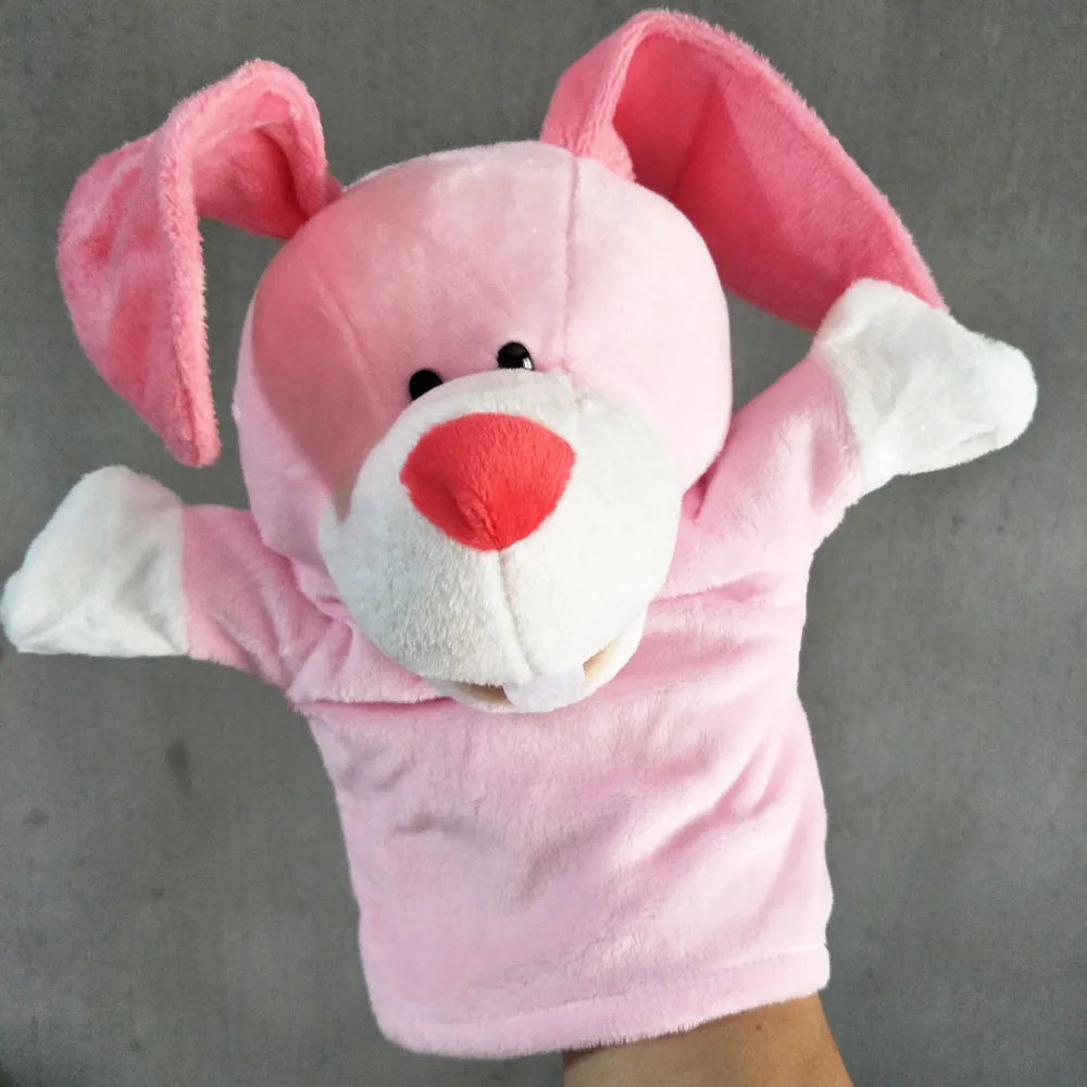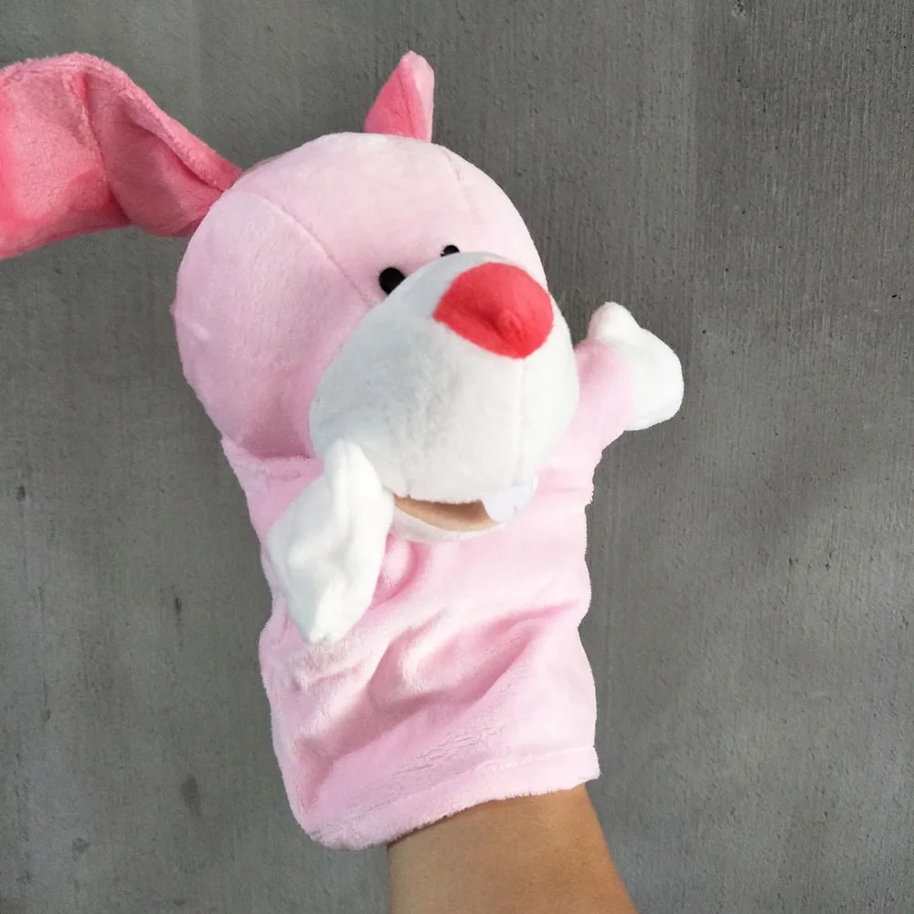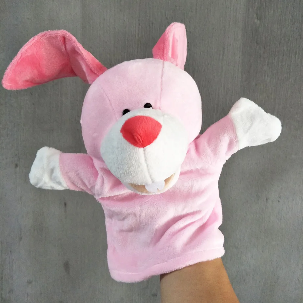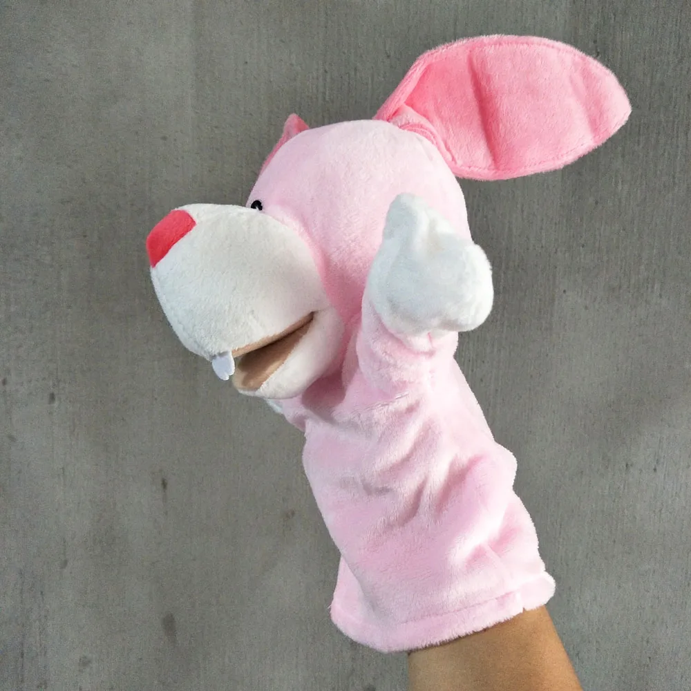 口を開けたピンクのウサギのハンドパペット幼児ぬいぐるみ - TopDealBox