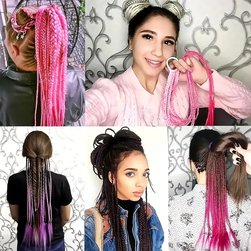 合成マルチストランドレインボーロングストレート三つ編みヘアエクステンション弾性ゴムバンドポニーテールヘアアクセサリー女性用 - TopDealBox