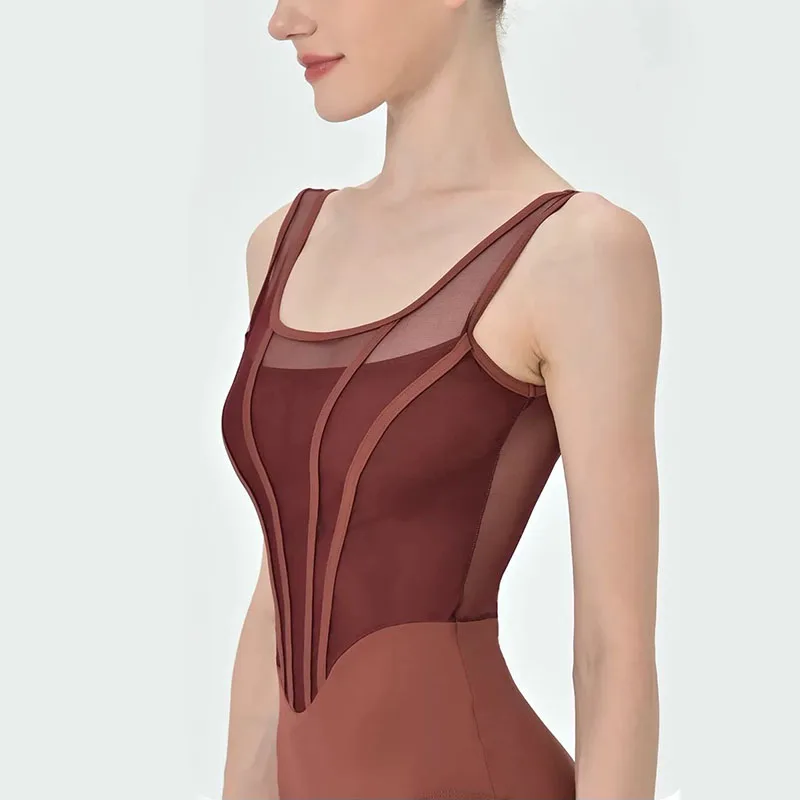 レトロバレエレオタード女性新デザインスプライス体操ボディスーツダンスウェア大人のエレガントな女性ヨガ服