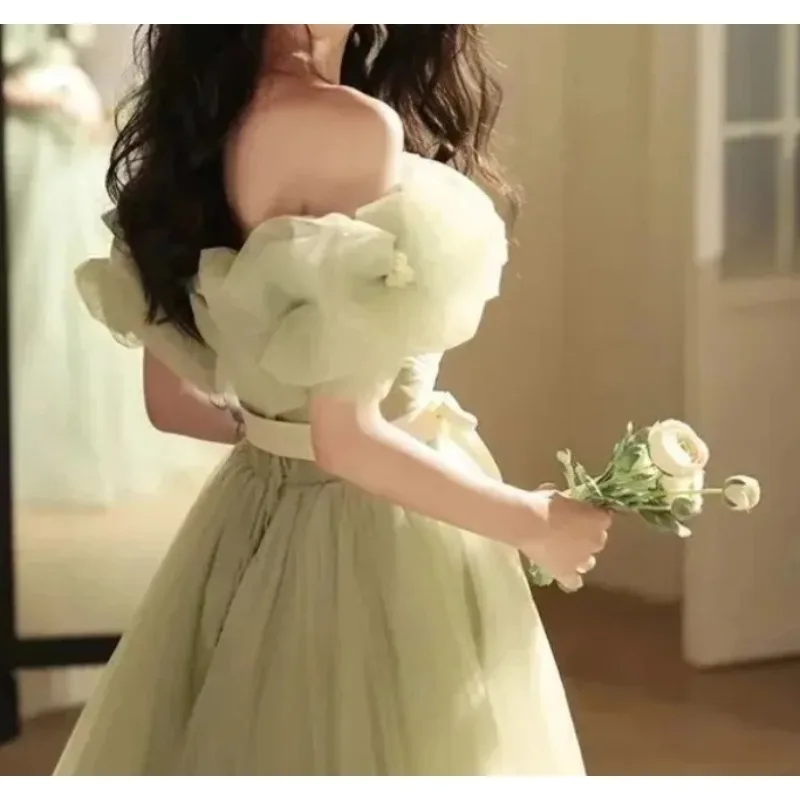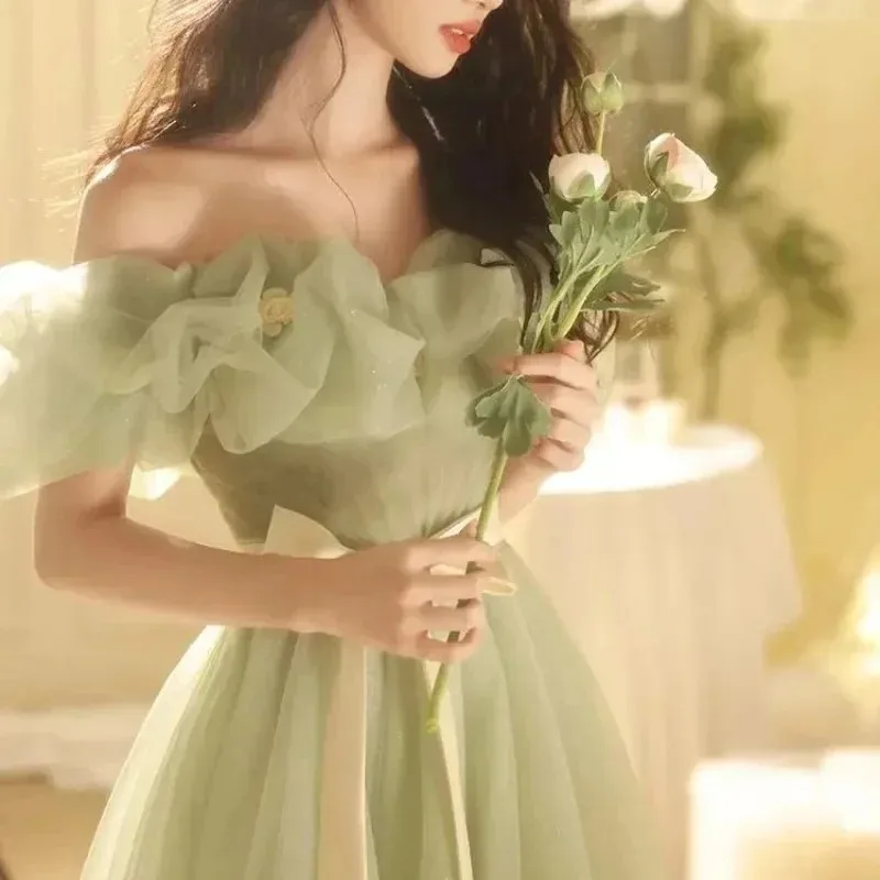 新しいピンクオフショルダーロングスウェットレディガール女性プリンセス花嫁介添人宴会パーティーウエディングパフォーマンスドレスガウン - TopDealBox