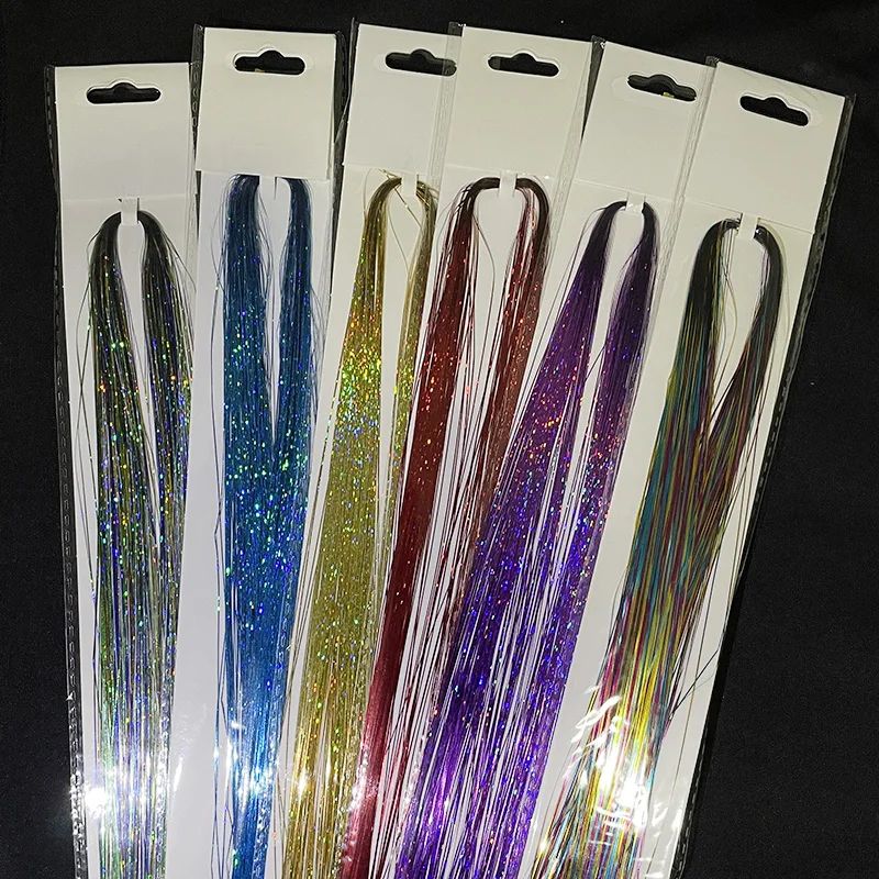 スパークルヘアティンセル合成虹色のストランド女の子の帽子ヘアビングヘアレーザー偽毛エクステンション装飾グリッター - TopDealBox