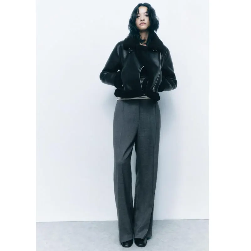 両面フェイクレザー毛皮一体型秋冬新スタイルレディースジャケットコートファッション多用途ルーズフィット長袖ジッパー - TopDealBox