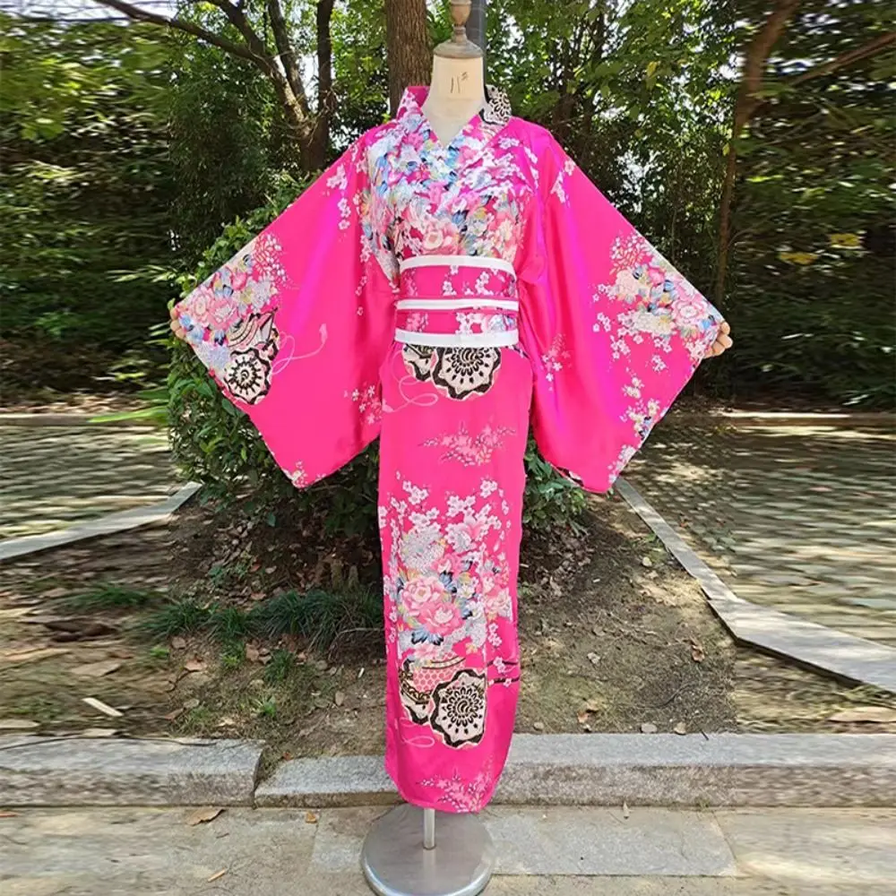 コスプレ衣装伝統的な日本の着物和風プリント花桜ガール着物ドレスアジアのエレガンス - TopDealBox