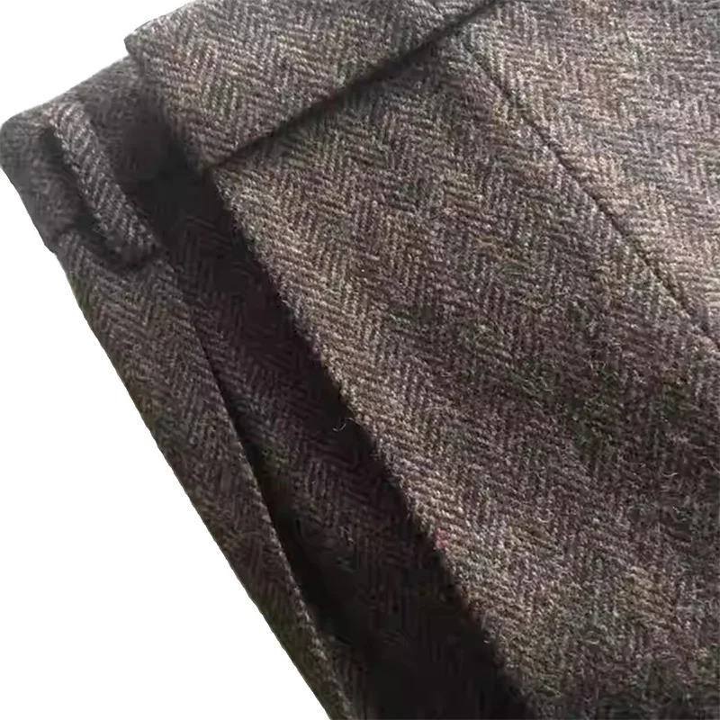 アメリカンレトロツイードハイウエストヘリンボーンウールカジュアルストレートレッグメンズパンツ(秋冬、大きいサイズ) - TopDealBox
