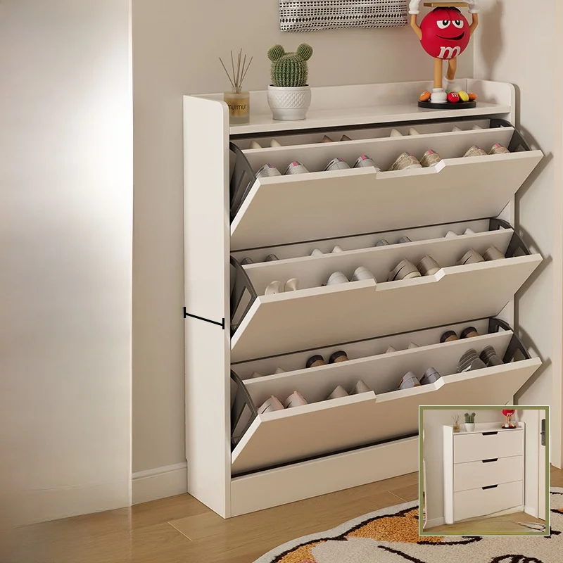 モダンミニマリスト木製フリップフロップ玄関靴箱大容量超薄型シューズラック(リビングルーム、バルコニー、家庭用) - TopDealBox