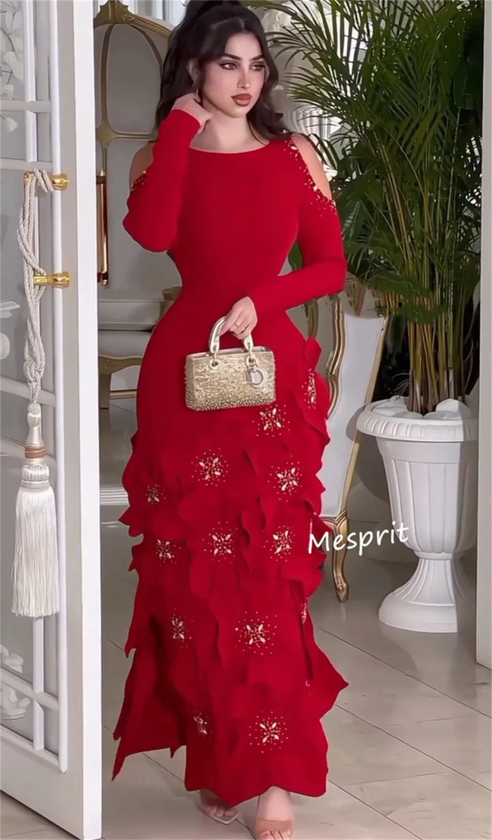 カスタマイズされたサイズが利用可能ジャージフラワーストレートスクープネックミディドレスオーダーメイドの機会エレガントでモダンなスタイル - TopDealBox