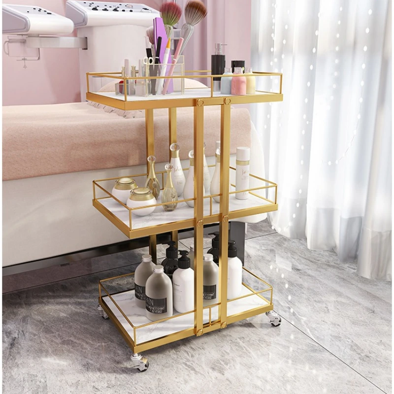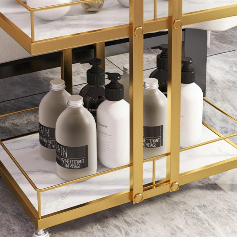 ホイール付きエステティシャンカート ユーティリティサロンローリングトロリー、ゴールドモバイルストレージビューティーサロン補助カート理髪店ステーション - TopDealBox