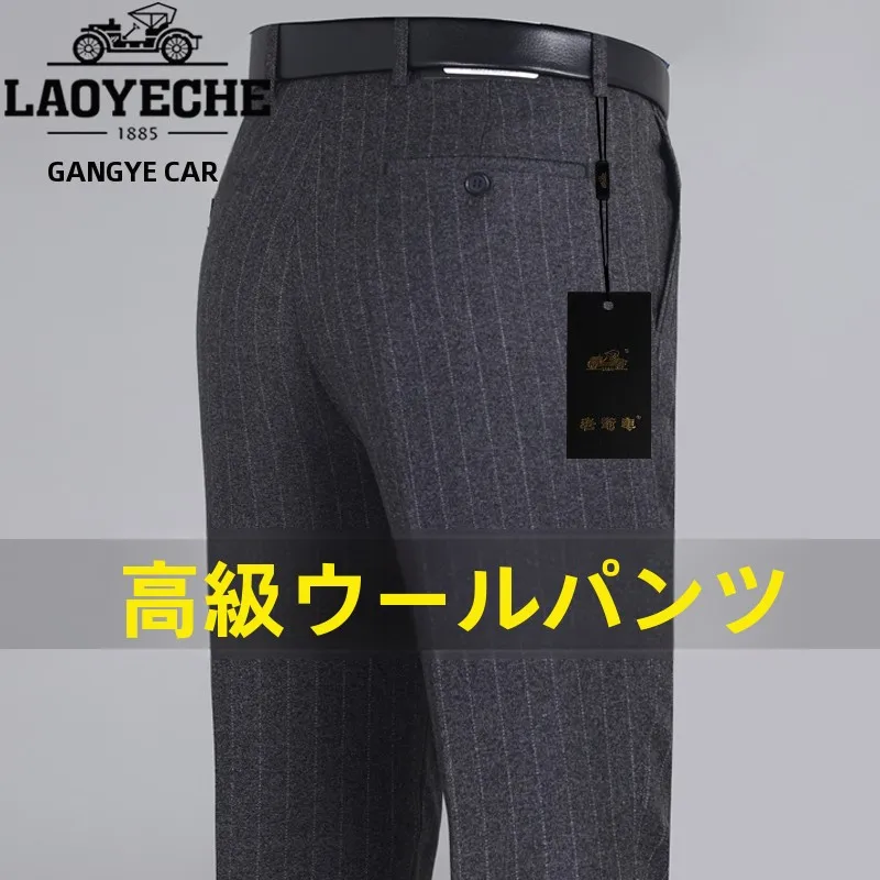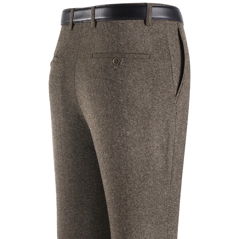 カジュアルビジネススタイル厚手ウールフリースメンズストレートレッグパンツ防シワアイロン不要秋冬ロングパンツ - TopDealBox