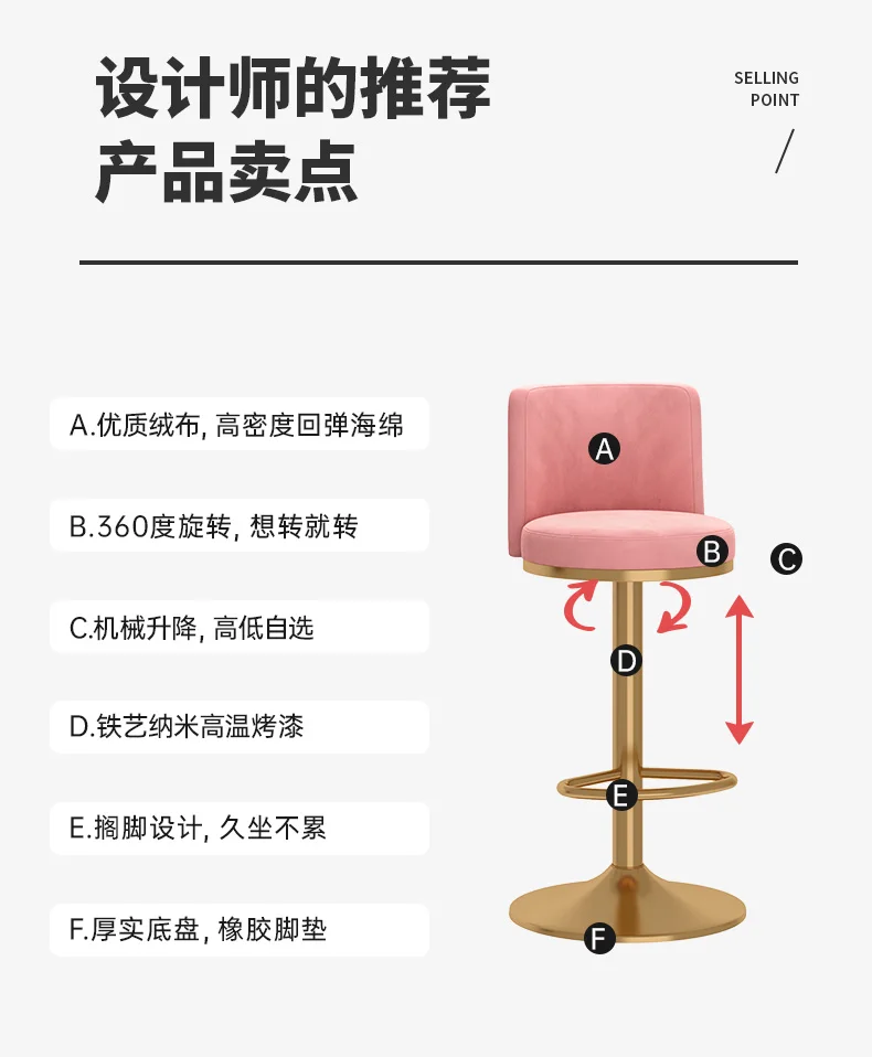 北欧ライト高級バーチェア回転調節可能な昇降背もたれ高品質ホームラウンドバースツール - TopDealBox