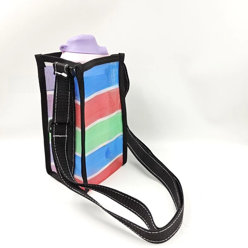 台湾製三色レディースネットハンドバッグ、中空スクエアレディース財布、ストライプバッグ、水筒ホルダー、野菜かご - TopDealBox