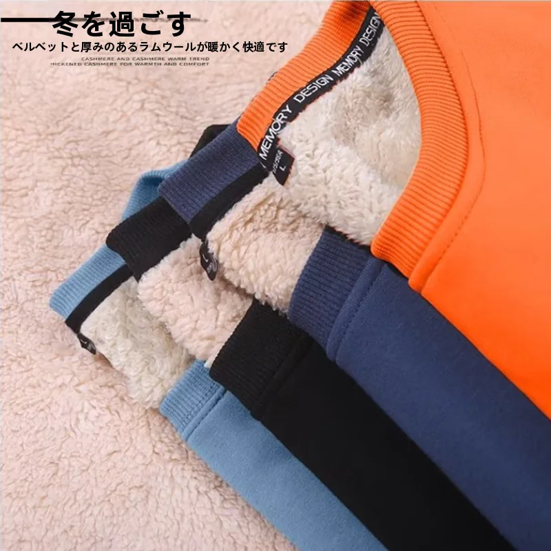メンズ冬用厚手ラムベルベットスウェットシャツラウンドネックカジュアル多用途ユースウォームトップラムベルベットジャケットルーズフィットスタイル - TopDealBox