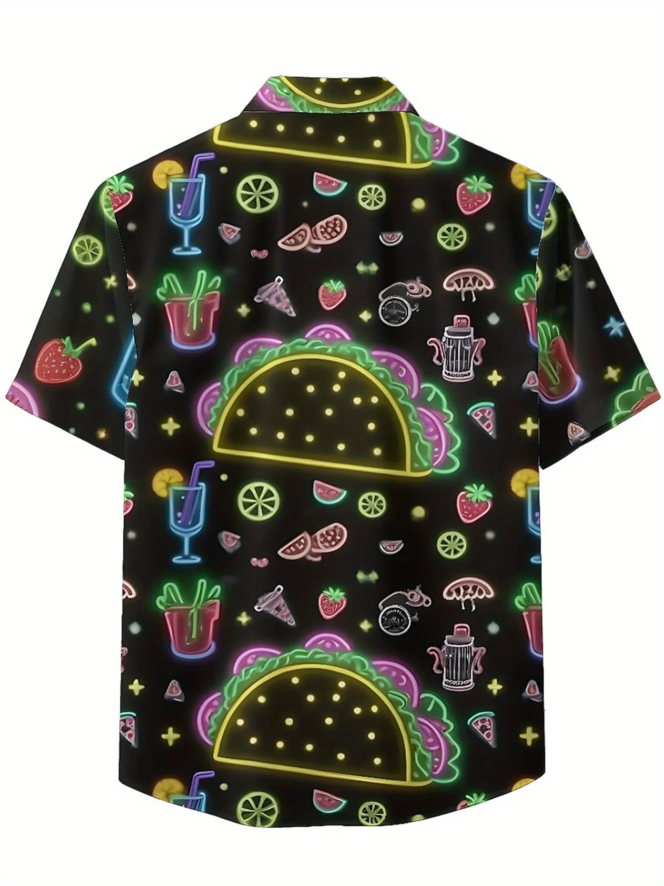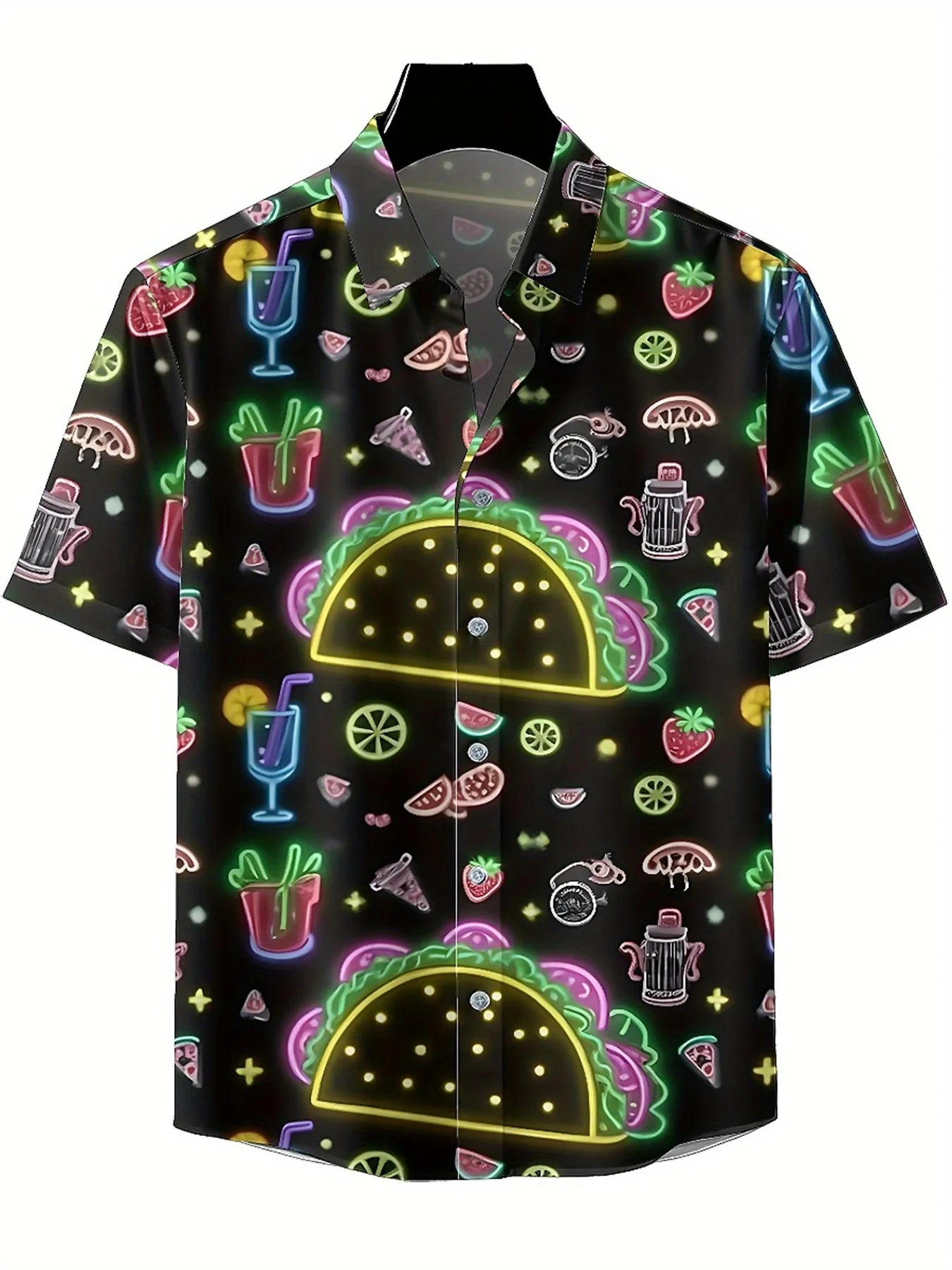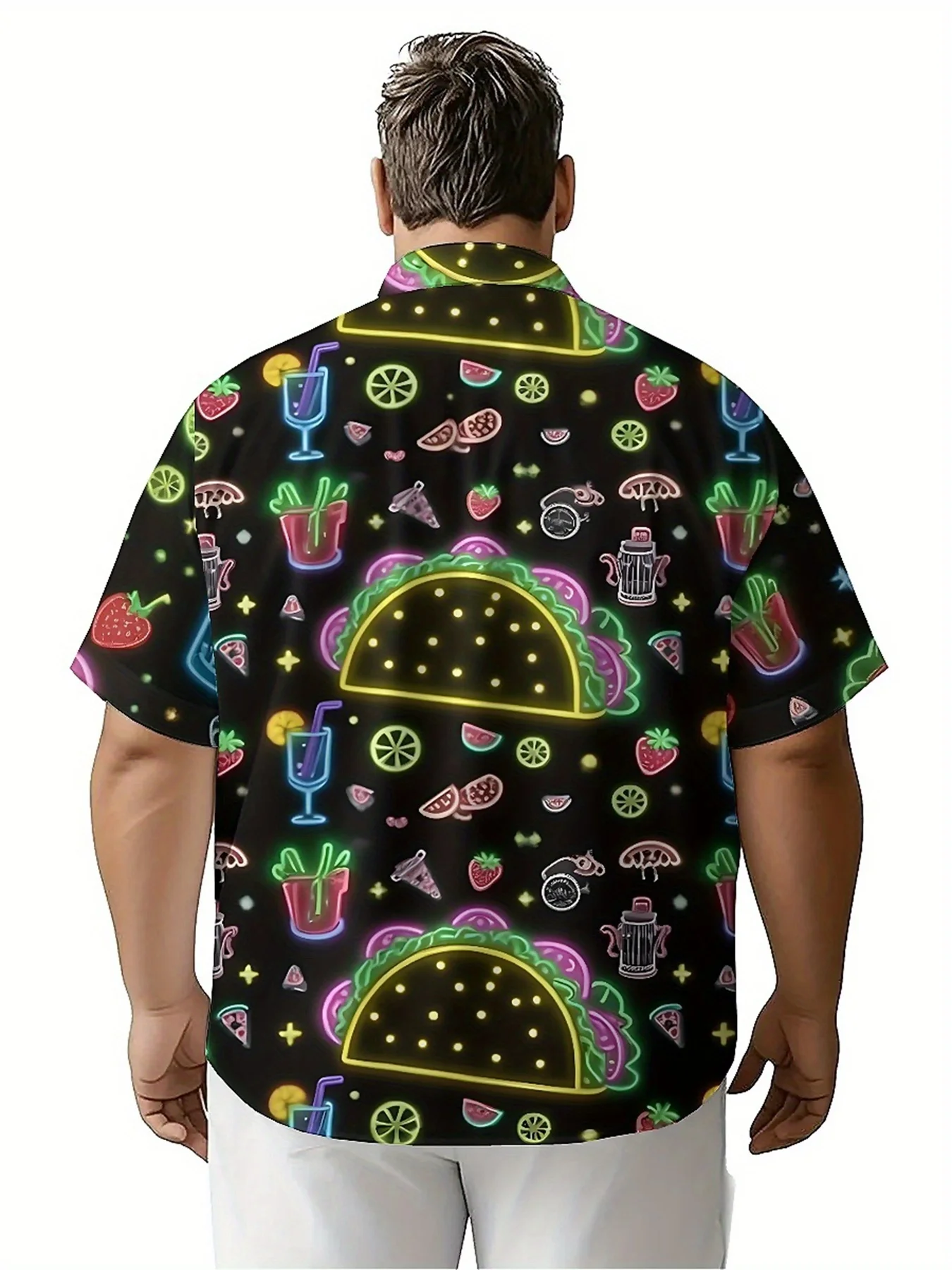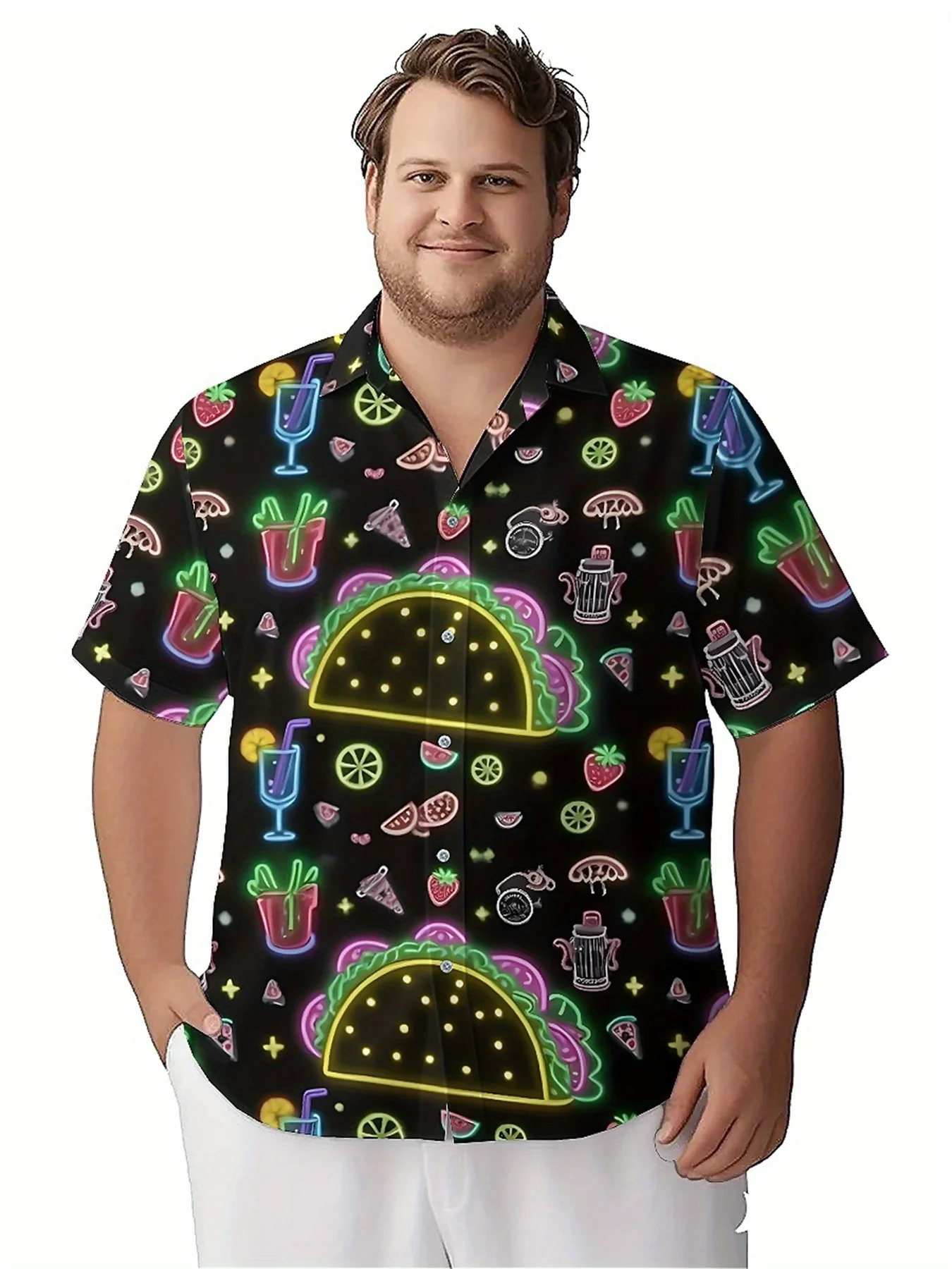 メンズ プラスサイズ アロハシャツ フルーツとドリンク柄、夏カジュアルトップス、アウトドアやパーティーに最適、ストリートウェア - TopDealBox