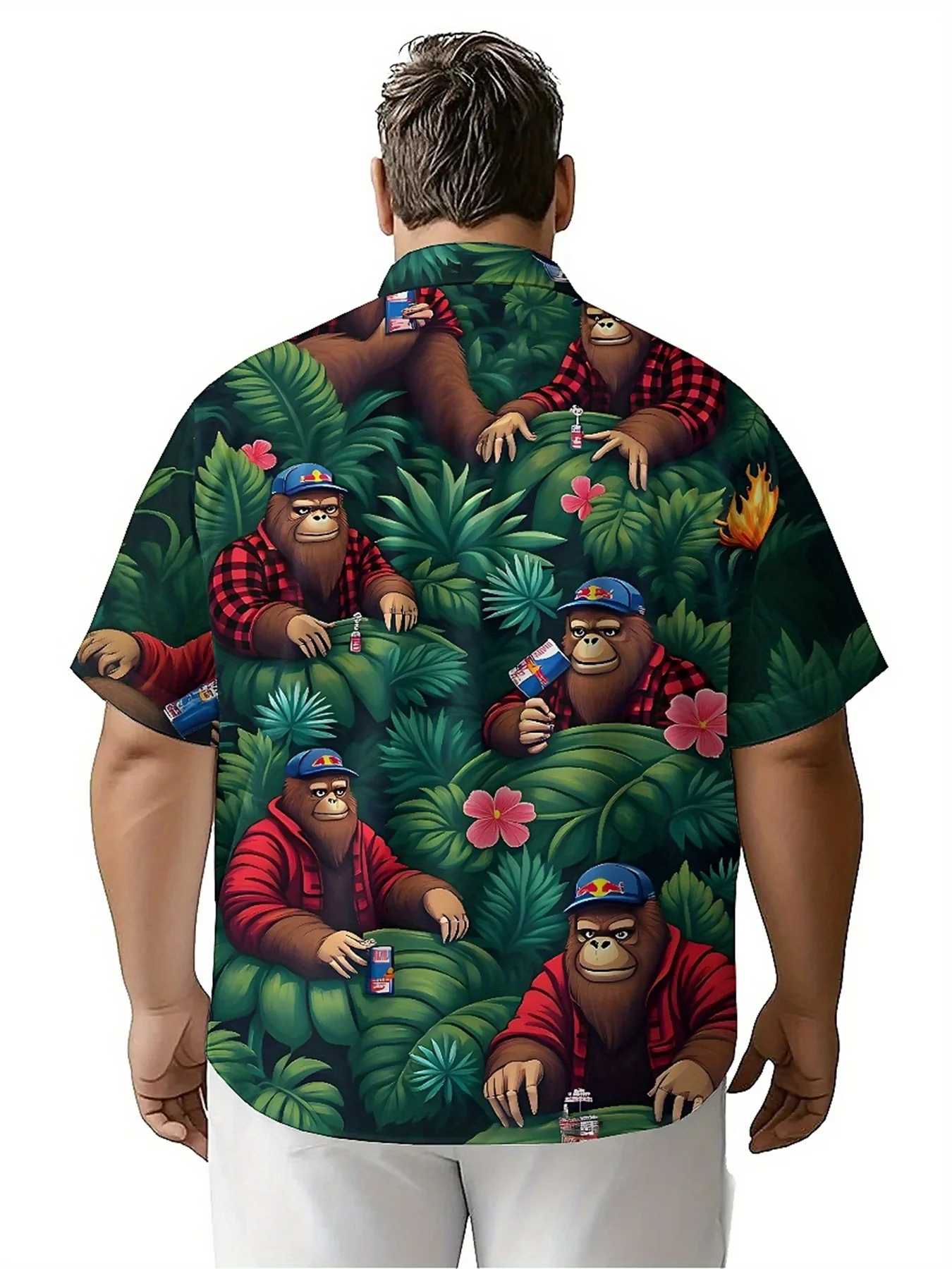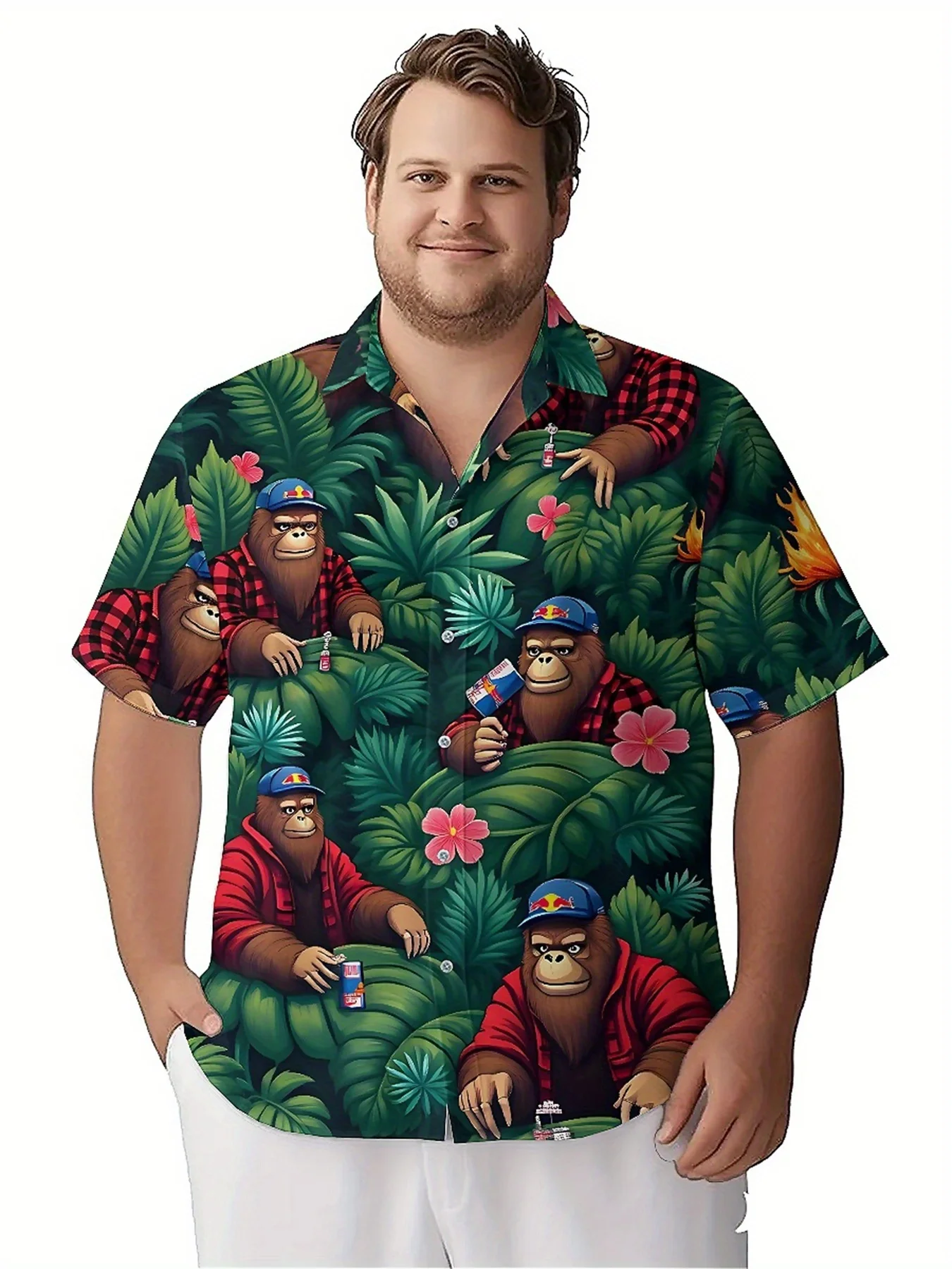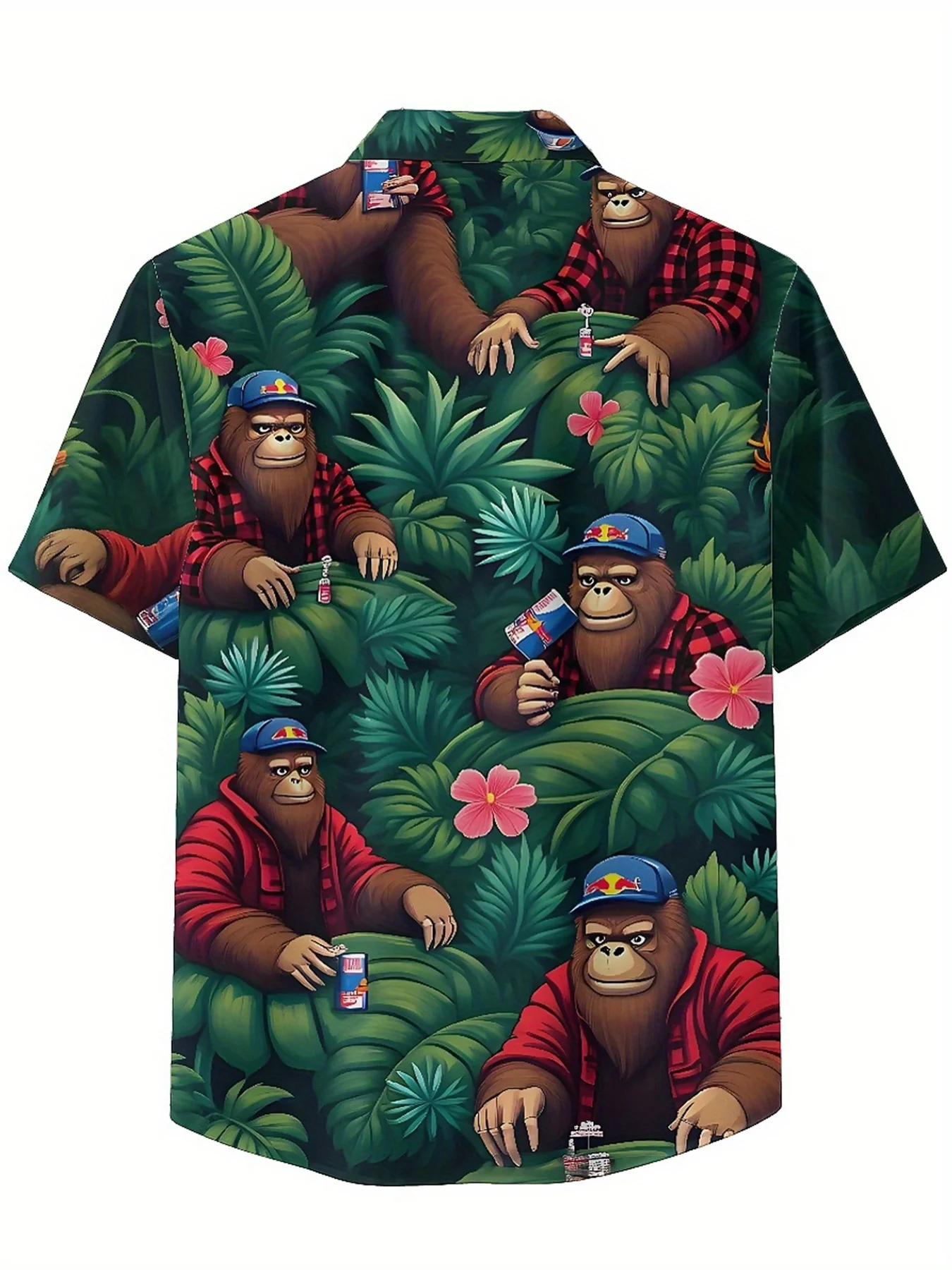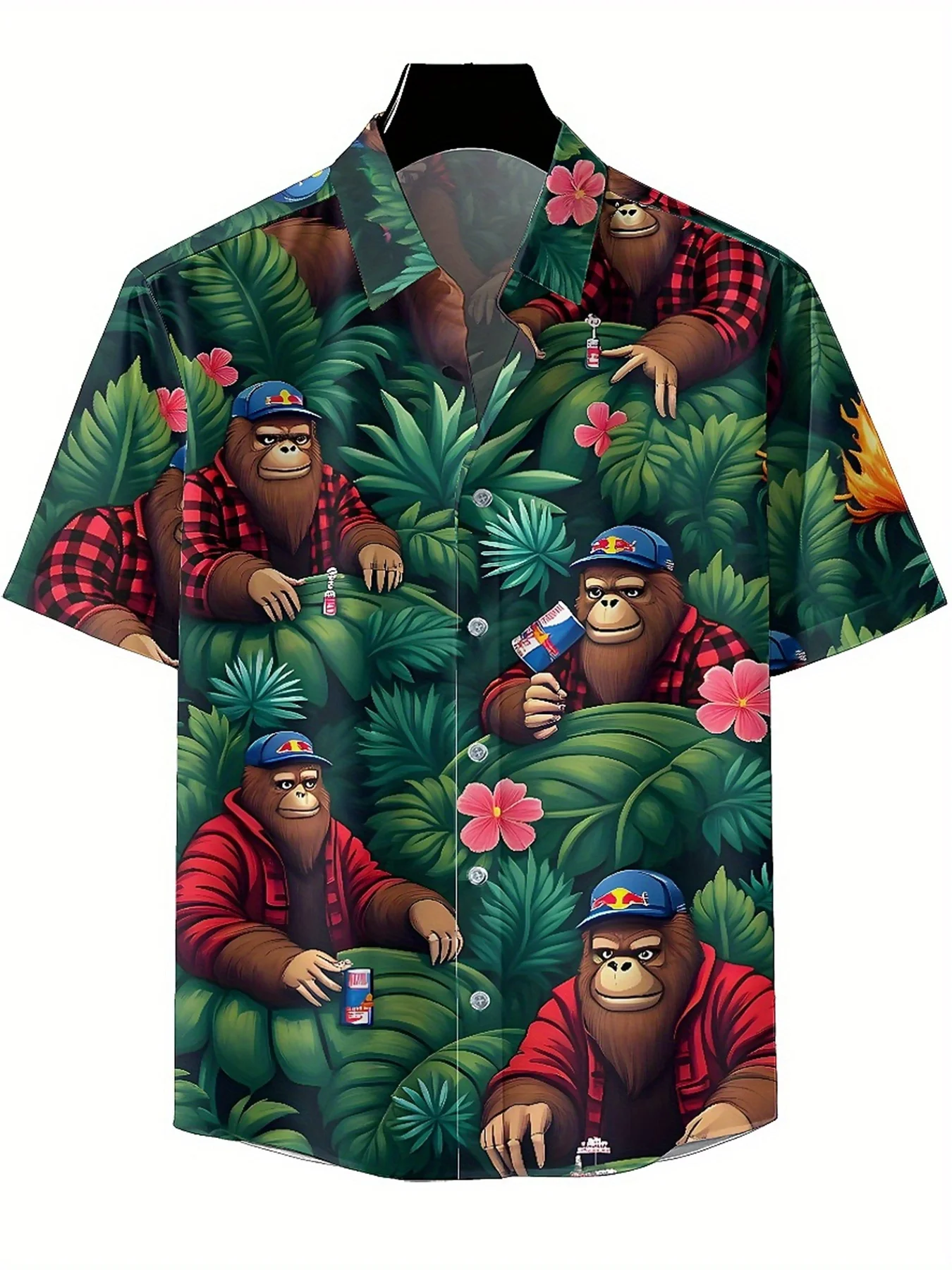 メンズ プラス サイズ ハワイアン シャツ赤と黒のチェック柄シャツを着たゴリラ、ユニセックス アロハ シャツ、トップスティの新作、ストリートウェア - TopDealBox