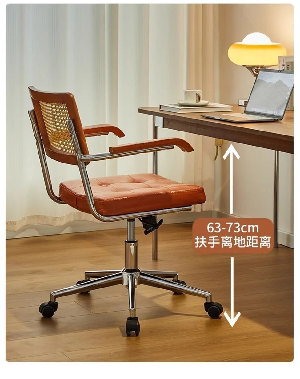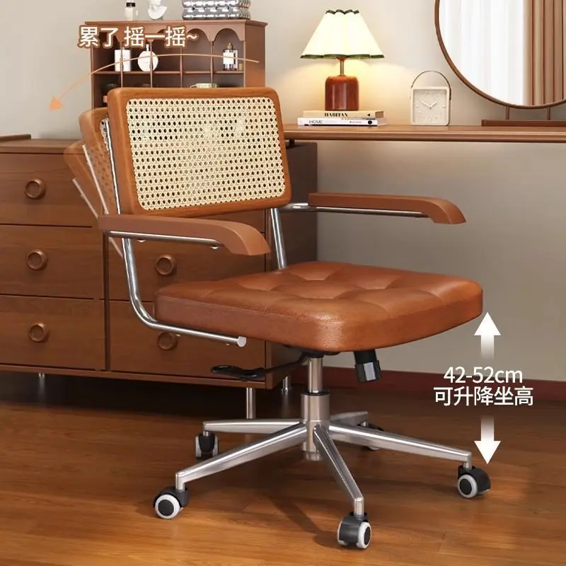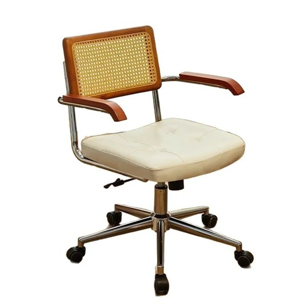 籐無垢材オフィスチェアインターネット有名人レトロ籐椅子コンピュータチェアホームリフト回転椅子学生学習椅子 - TopDealBox
