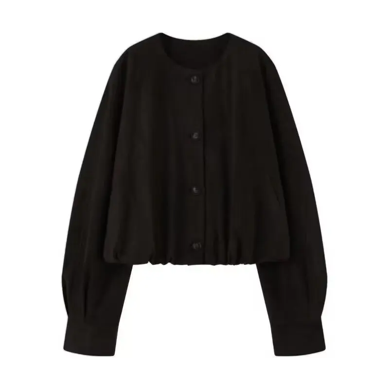 ルーズ長袖純革ジャケット女性のファッション秋の新スタイル多用途アウターウェアエレガントなシンプルなデザインボタン留め - TopDealBox
